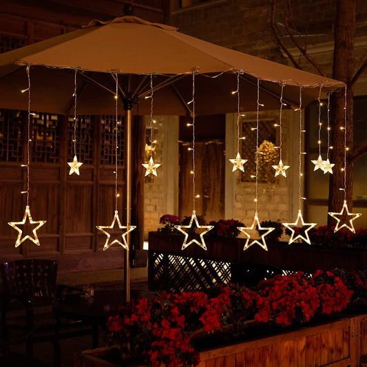 12 Stars/diya Curtain Fairy String 108 Led 6 Big Star 6 Small Star Light with 8 Flashing Modes for Indoor & Outdoor Decorations, Christmas, Wedding, Party, Home