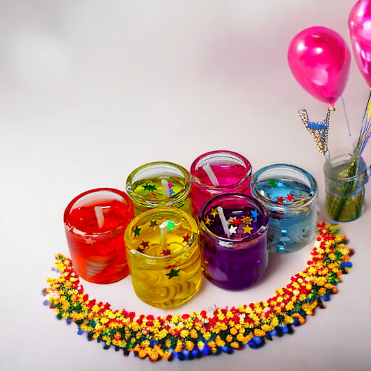UK-0639 Cute Little Mini Gel Wax Glass Candles for Home Decoration Jelly Candles for Diwali (pack of 6)