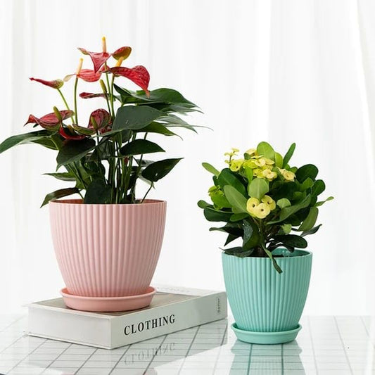 UK-0471 Plastic Round Flower Pots with Bottom Tray Set of 5 Pots for Home Decor and Balcony, Terrace Indoor & Outdoor Pots 5 pcs Multicolor Flower Planters