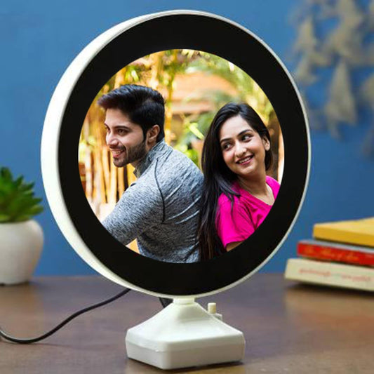 UK-0174 Magic Mirror Photo Frames with LED Light Inside Round & Customized Personal Photograph with USB Cable