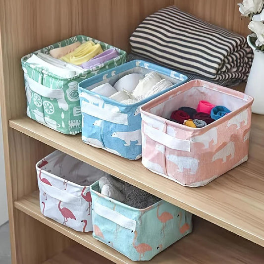UK-0049 Canvas Fabric Foldable Mini Storage Basket - Small Collapsible Canvas Containers Organizers With Handle For Home-Multi Design