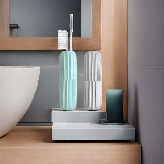 UK-0250 Toothbrush Capsule Shape Container Case Box Storage Organizer Cover Portable for Travel Bathroom Hiking Camping Plastic Toothbrush Holder