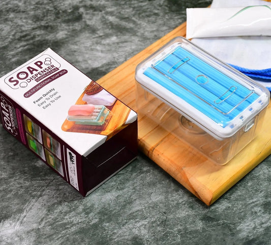 UK-0185 2-in-1 Portable Soap Dish & Soap Dispenser with Roller and Drain Holes, Foaming Soap Bar Box