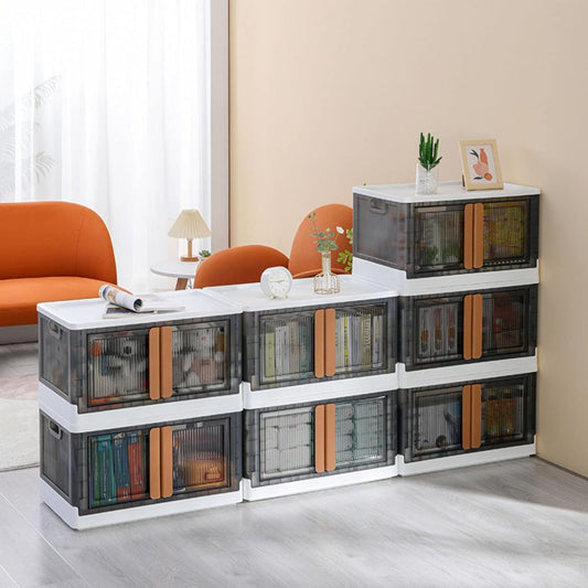 UK-0727 Folding Storage Cabinet, Bottom Roller Stackable Toy Storage 72L 2 Opening Modes PP Foldable for Kitchen
