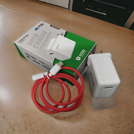 UK-0670 M&i 65W Fast Charing Adaptor & Cable Combo Compatible with OnePlus, Samsung, Realme, Xiaomi, Oppo, Vivo & Other Smartphones, Type C Charger