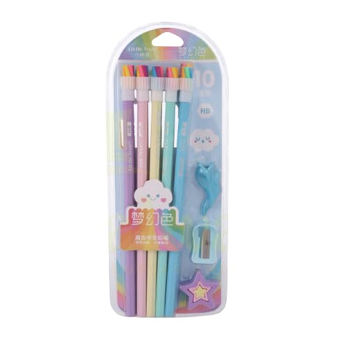 UK-0580 Rainbow Colour Unicorn Theme Stationery HB Pencil Rubber Tip Sharpener and Pencil Grip Set for Sketching Writing for Kids Children School Student Office Return Gifts (10 Pcs)