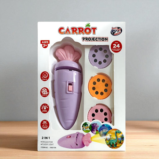 UK-0949 2-in-1 Carrot Shape Projector Flashlight with 24 Animals Images Toy