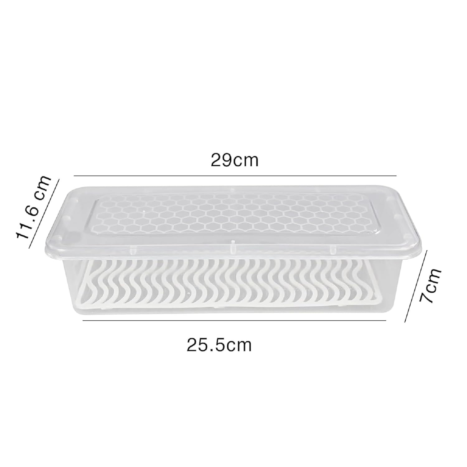 - The refrigerator storage containers box set acts as a multipurpose unit for storing cutlery, condiments, eggs, chocolates and more! It's up to your imagination. Using refrigerator storage containers helps extend the shelf life of perishable items like fruits, vegetables, meats, and dairy products. Efficiently utilize space, reduce waste, and keep your food fresher for longer by incorporating refrigerator storage containers into your kitchen routine.