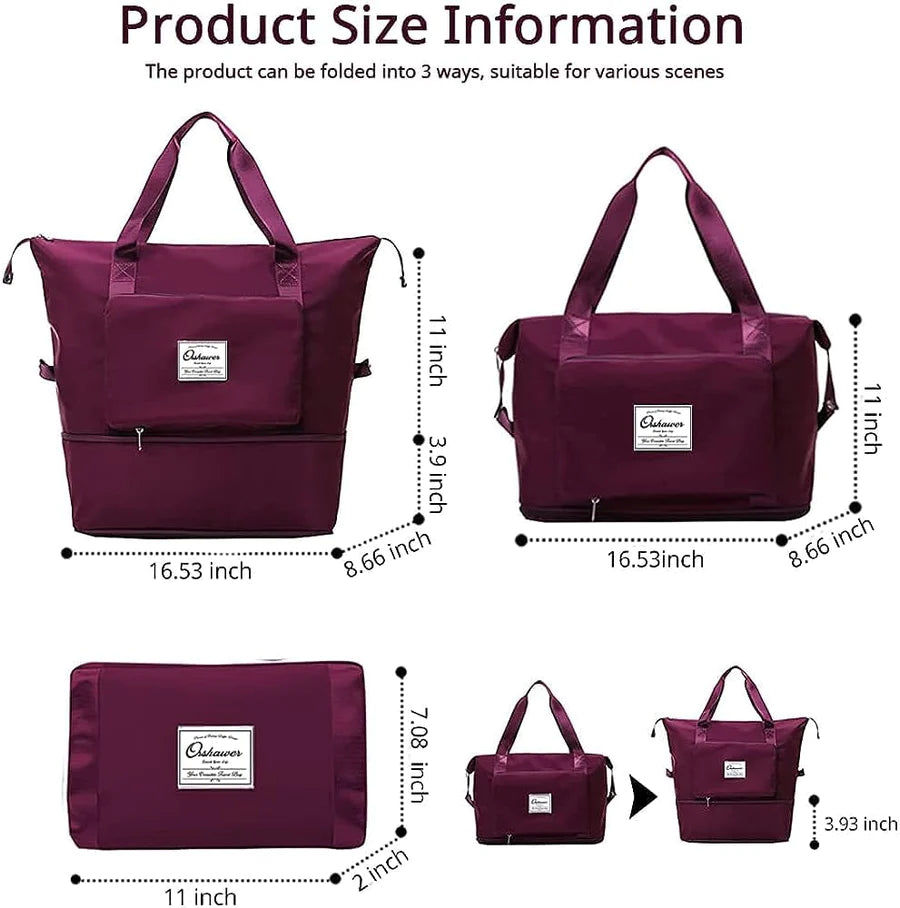 - Large capacity travel bag greatly save space after folding, easily carry on your flight and travel after expansion. Great idea as an extra bag into your luggage bag. Normal Dimension: 40 x 22 x 30cm. Expansion Dimension: 40 x 22 x 45cm.; DURABLE MATERIAL - Large capacity folding travel bag made with lightweight waterproof and tear resistant oxford nylon fabric, solid, durable and strong enough to carry.It is enough for short trips and can easily accommodate 3-5 days of travel clothes. <br>