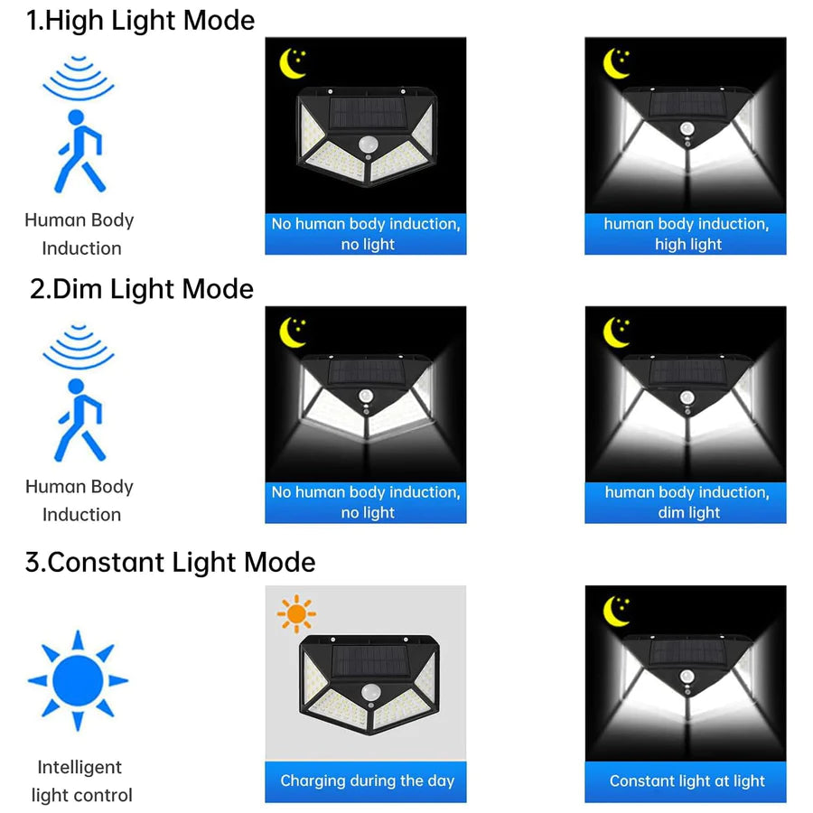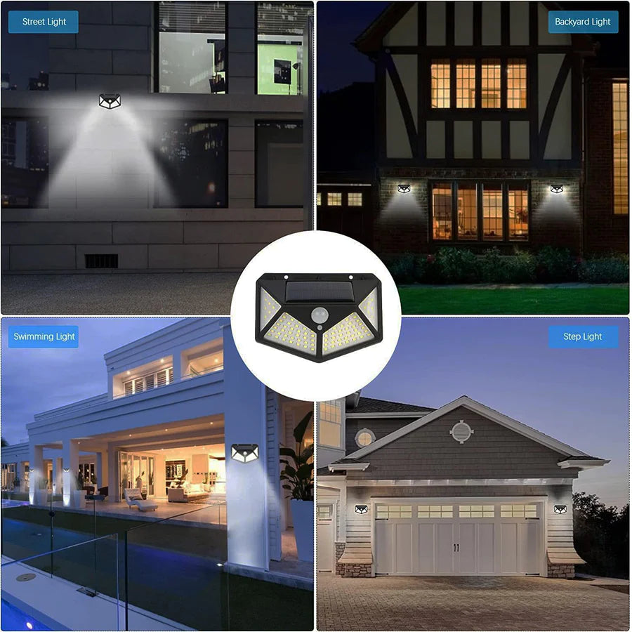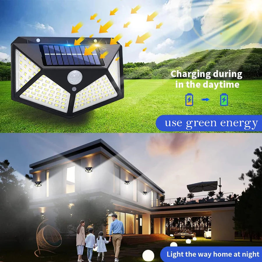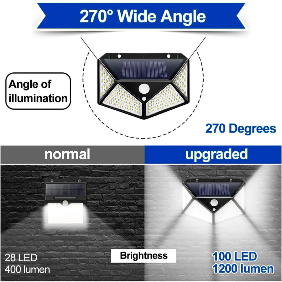 UK-0035 Solar Lights 100 LED Solar Security Light with Waterproof Wall Light Solar Powered and 3 Modes for Outdoor 1200mAh