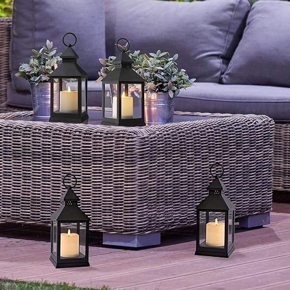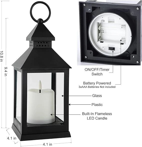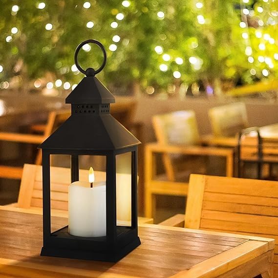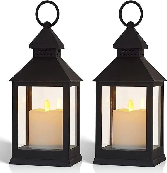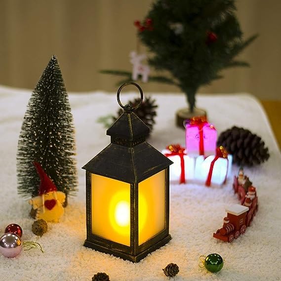 UK-0041 (2pc)Mini Square Lantern Lamps with Moving Flame LED Light for Home Decoration Diwali & Christmas