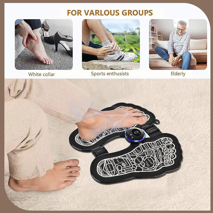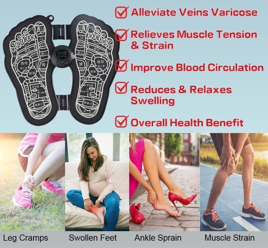 - 【The Foot Mat】With EMS technology, stimulate foot muscles through LOW-FREQUENCY ELECTRICAL PULSE TECHNOLOGY. Circulation Massager Machine can improve the blood circulation of the feet and legs, stimulate the nerves, reduce leg muscle weakness, calf cramps, and relieve the soreness and fatigue of the feet and calves.