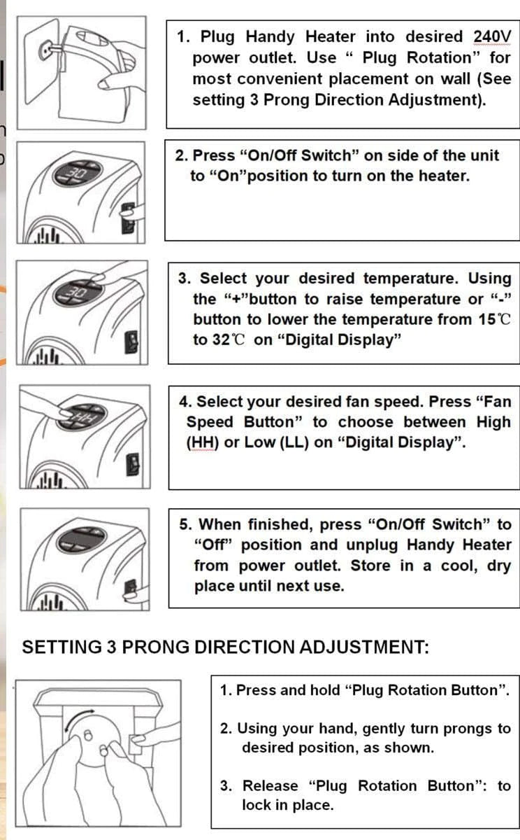 - Easy to Use The Handy Heater is made for your convenience. Simply plug in the Handy Heater into any outlet for quick and easy heat instantly