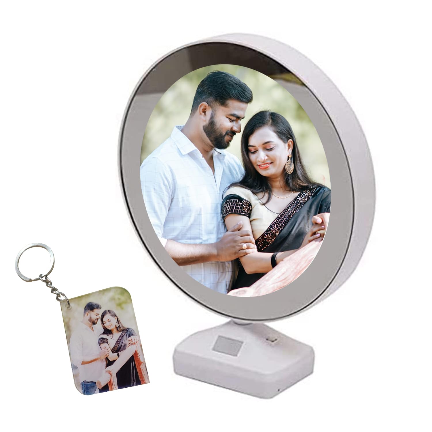 UK-0174 Magic Mirror Photo Frames with LED Light Inside Round & Customized Personal Photograph with USB Cable