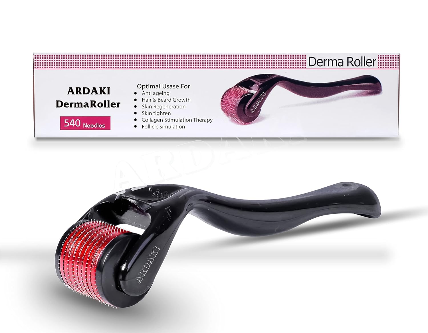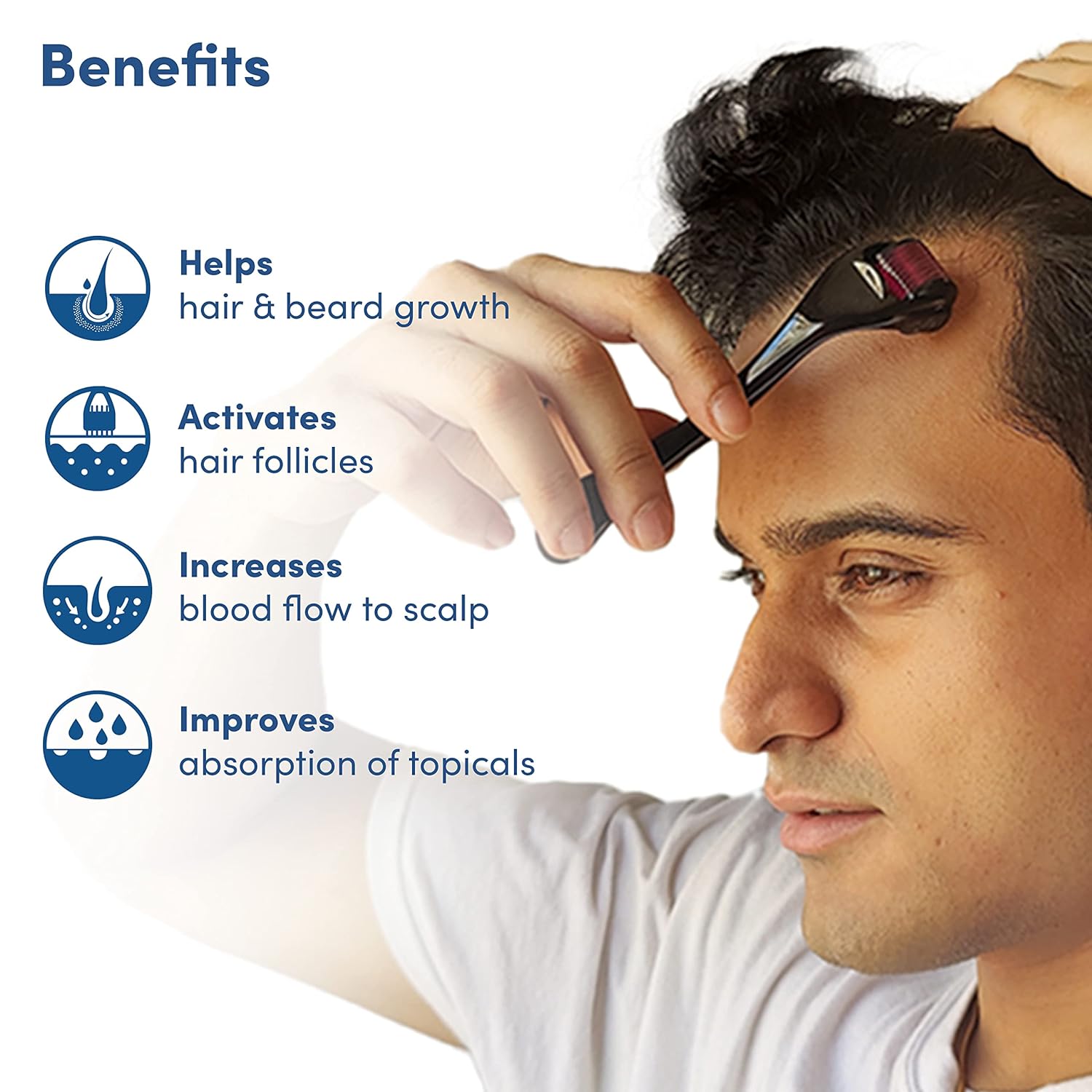 UK-0176 Derma Roller For Hair And Beard Regrowth 540 Micro 0.5mm Titanium Alloy Needles Reduces Hair Fall & Stimulates Hair Follicles, Safe and Effective Easy to use | Skin Care Men and Women