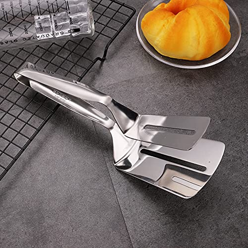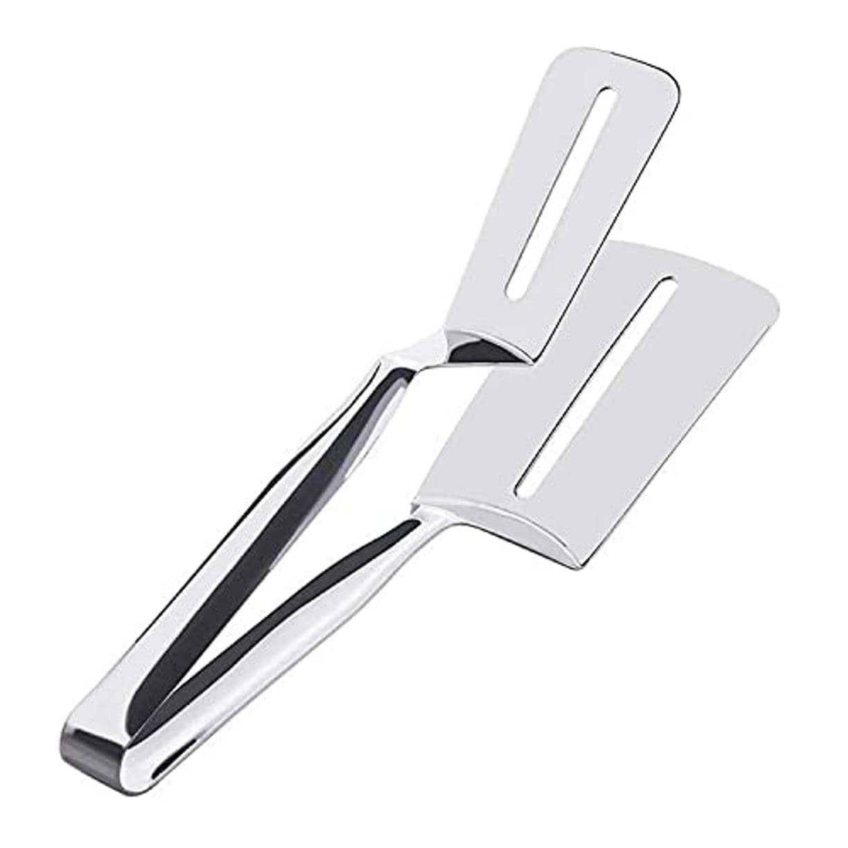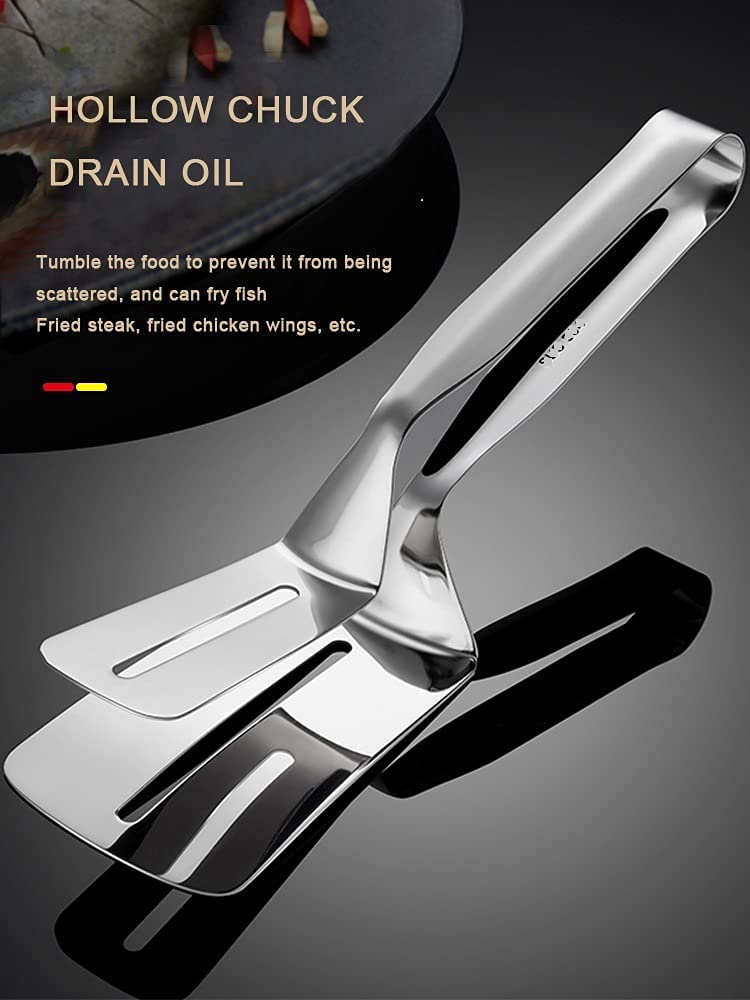 - Multifunctional Flexibility- Grab, flip & cleans! Using this 3-in-1 cooking tong, flipper and scraper, It is good for flipping & frying items in the oil and works great for flipping burgers, steaks, chicken, vegetables, Pancakes and more. Can also be used to scrap/clean the griddle, spread oil, lightly dice or manage the food, or pull food out of the air fryer or ovens.