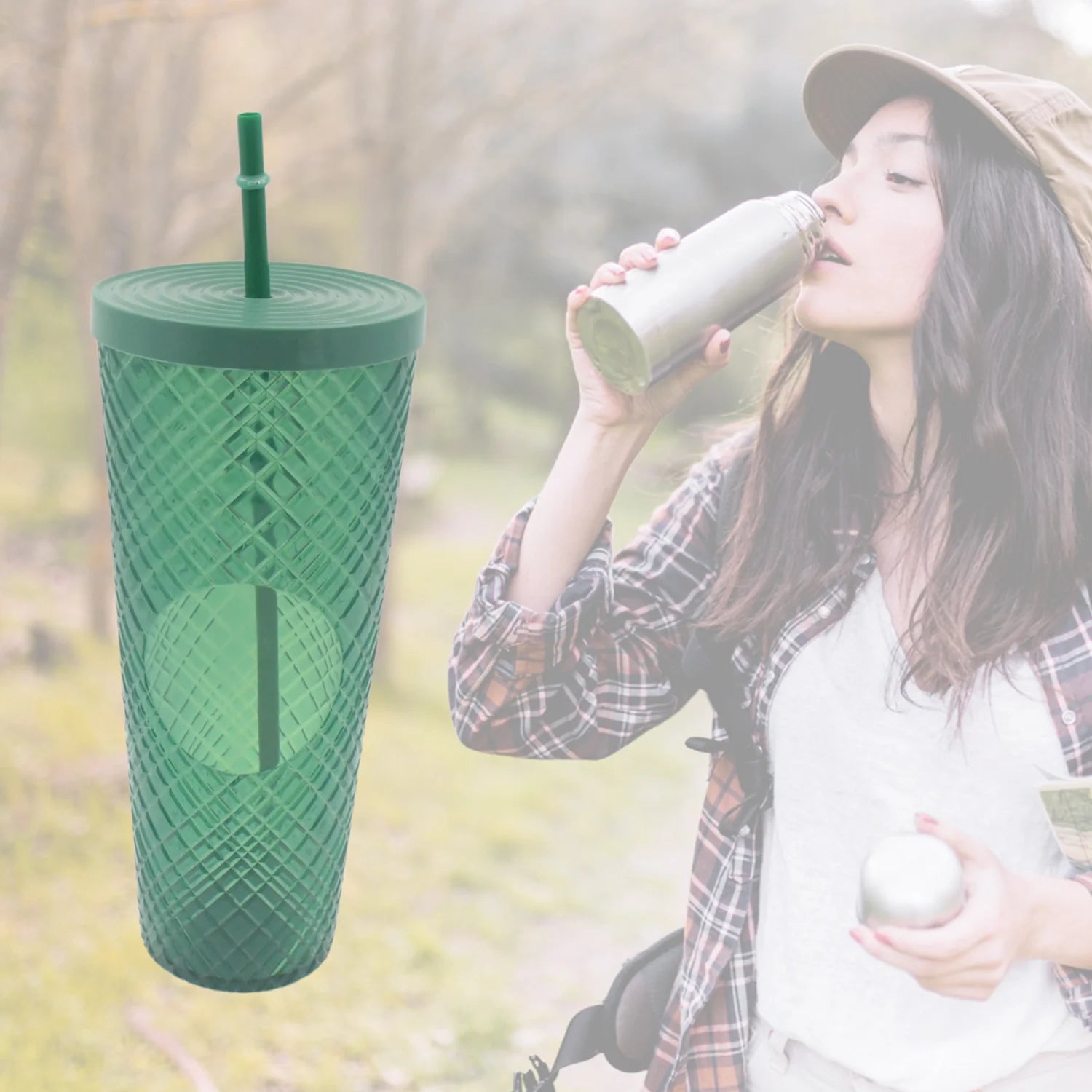 UK-0247 Cup with Straw Reusable Matte Studded Tumbler with Leak Proof LID Water Cup Travel Mug Coffee ICE Water Bottle