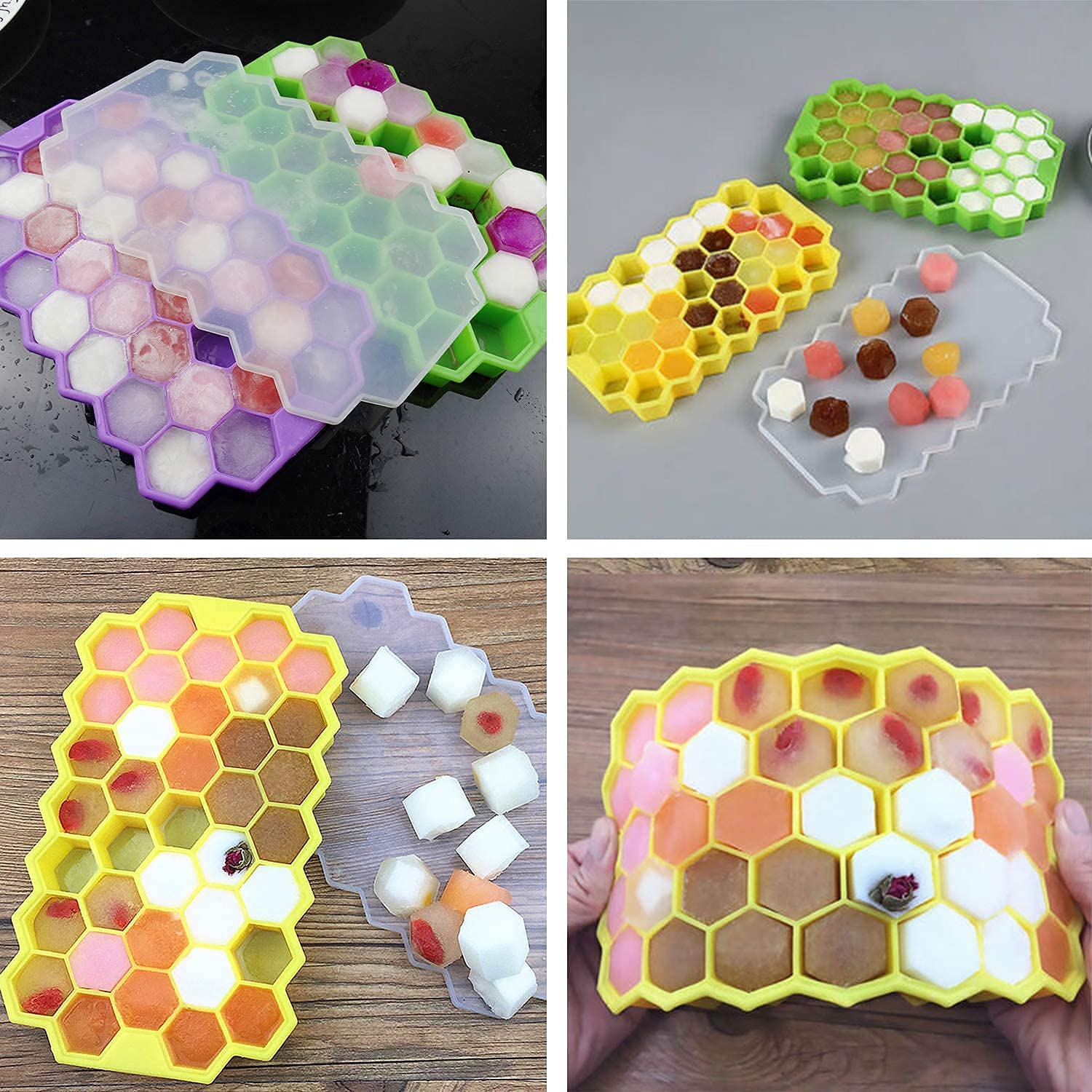 UK-0297 Ice Cube Tray for Freezer Flexible Silicone Honeycomb Design 37 Cavity Ice Cube Tray Ice Cube Box for Home Ice Cubes Silicon Trays for Freezer Mould Safe Ice Cube Molds Multicolor