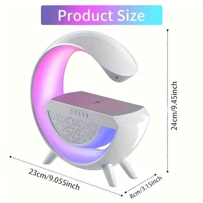 UK-0333 G-Shape Atmosphere Lamp Bluetooth Speaker Desk Table Lamp with Wireless Charger LED Light | FM Radio | 7 Light Colour Modes | Bluetooth Music |15W Fast Charging (Multicolor)