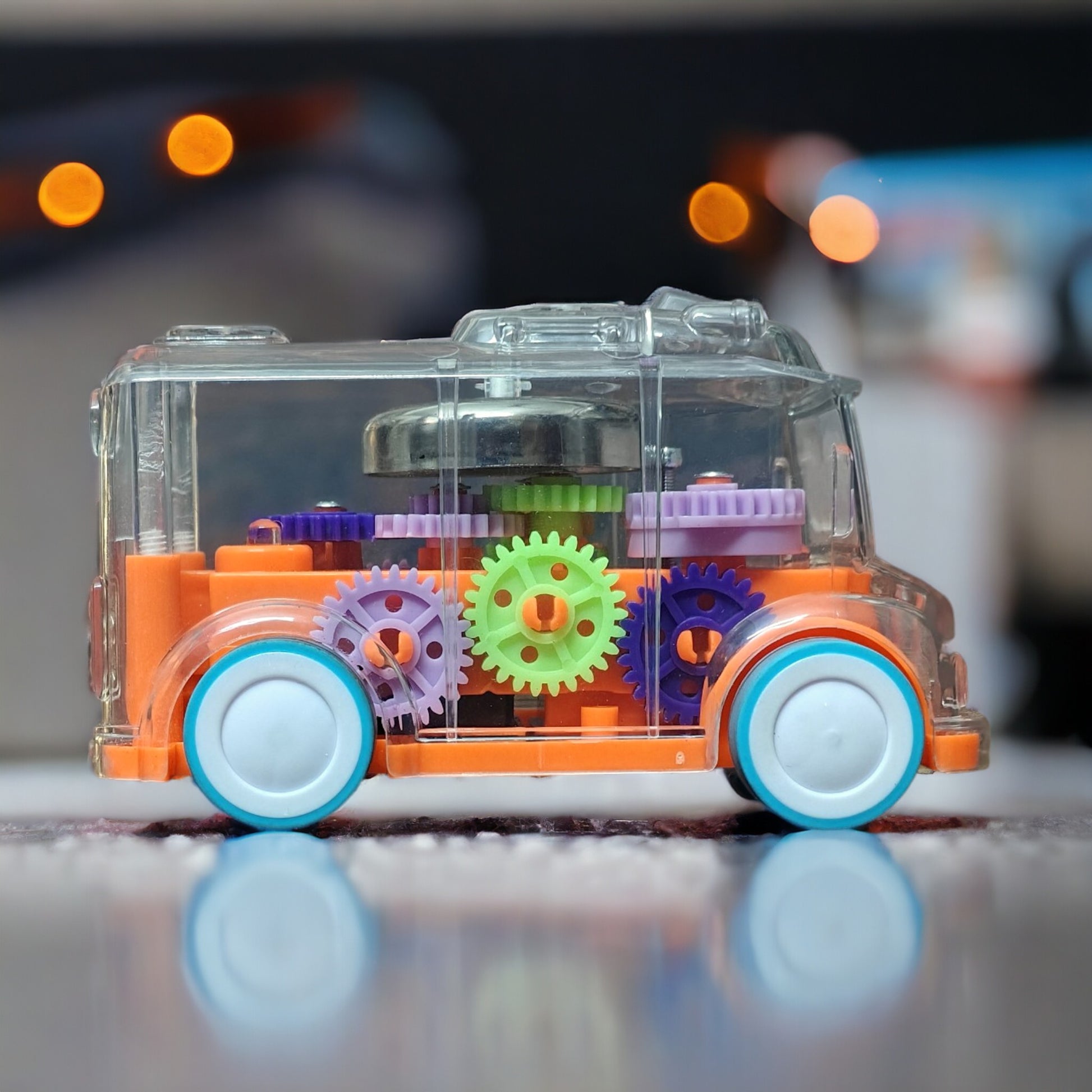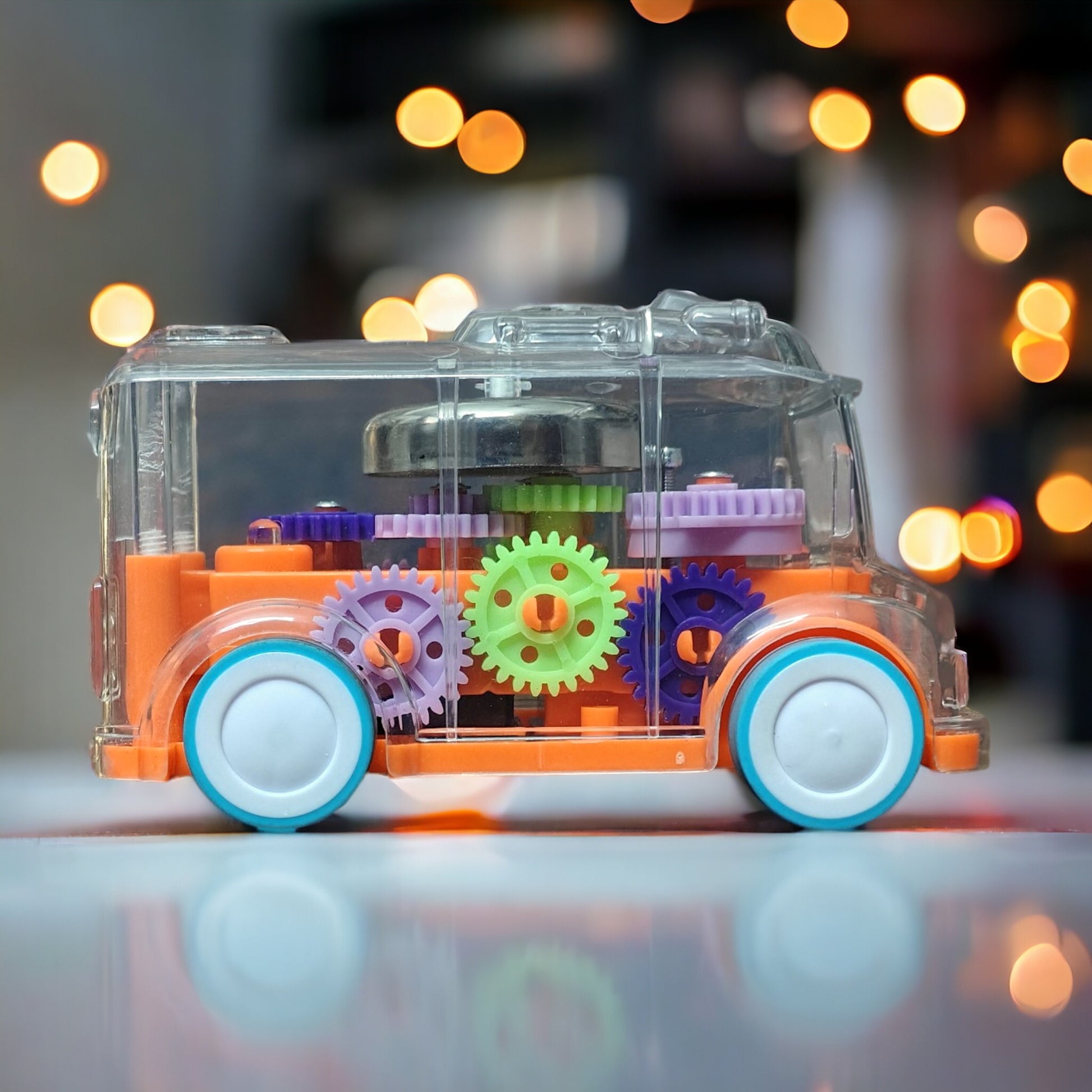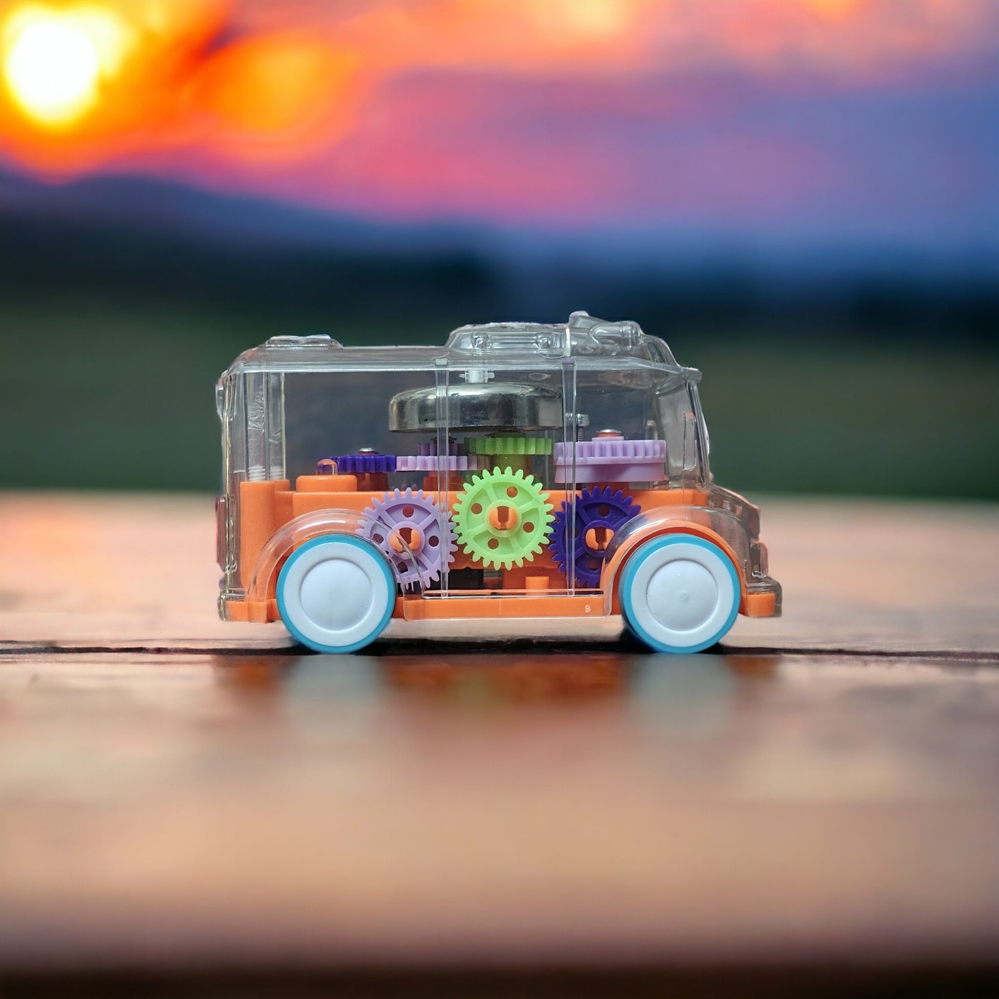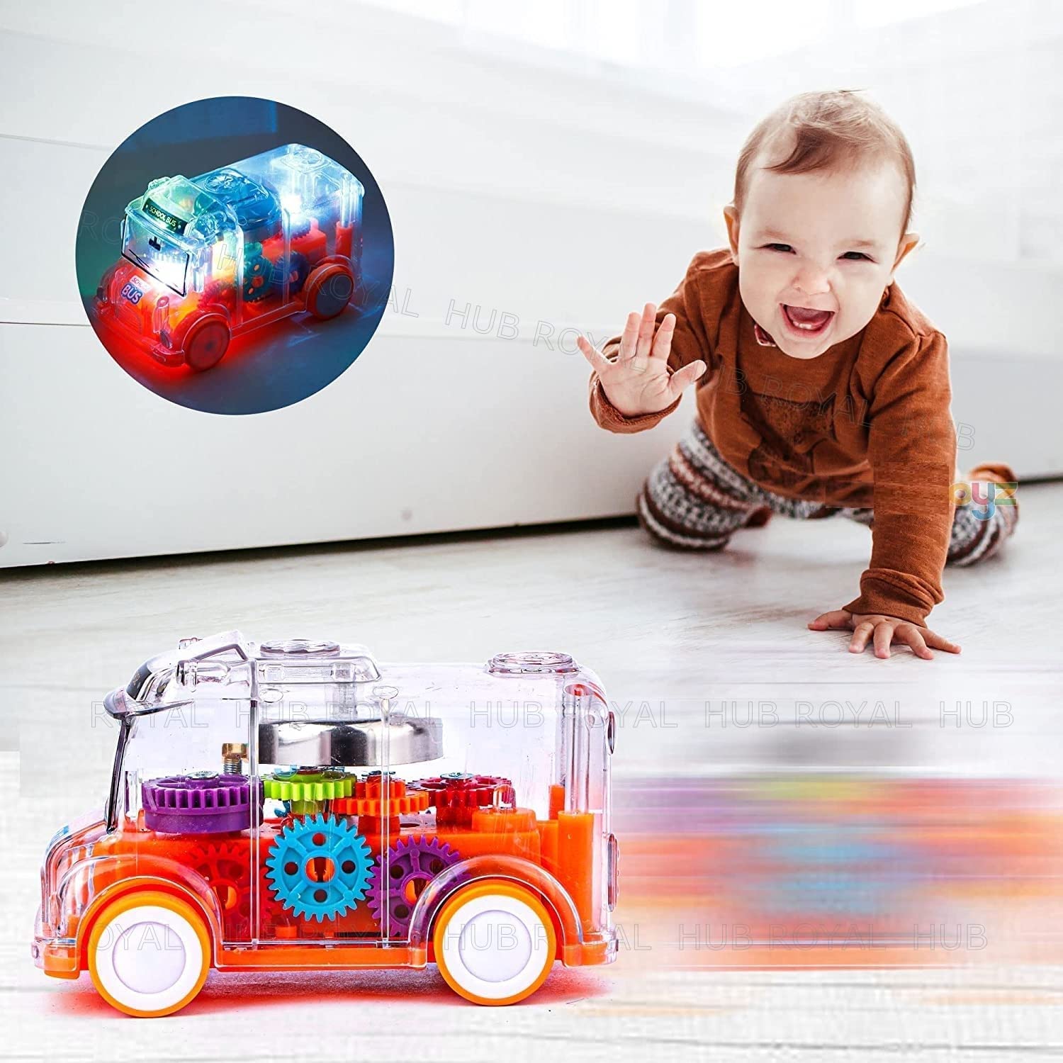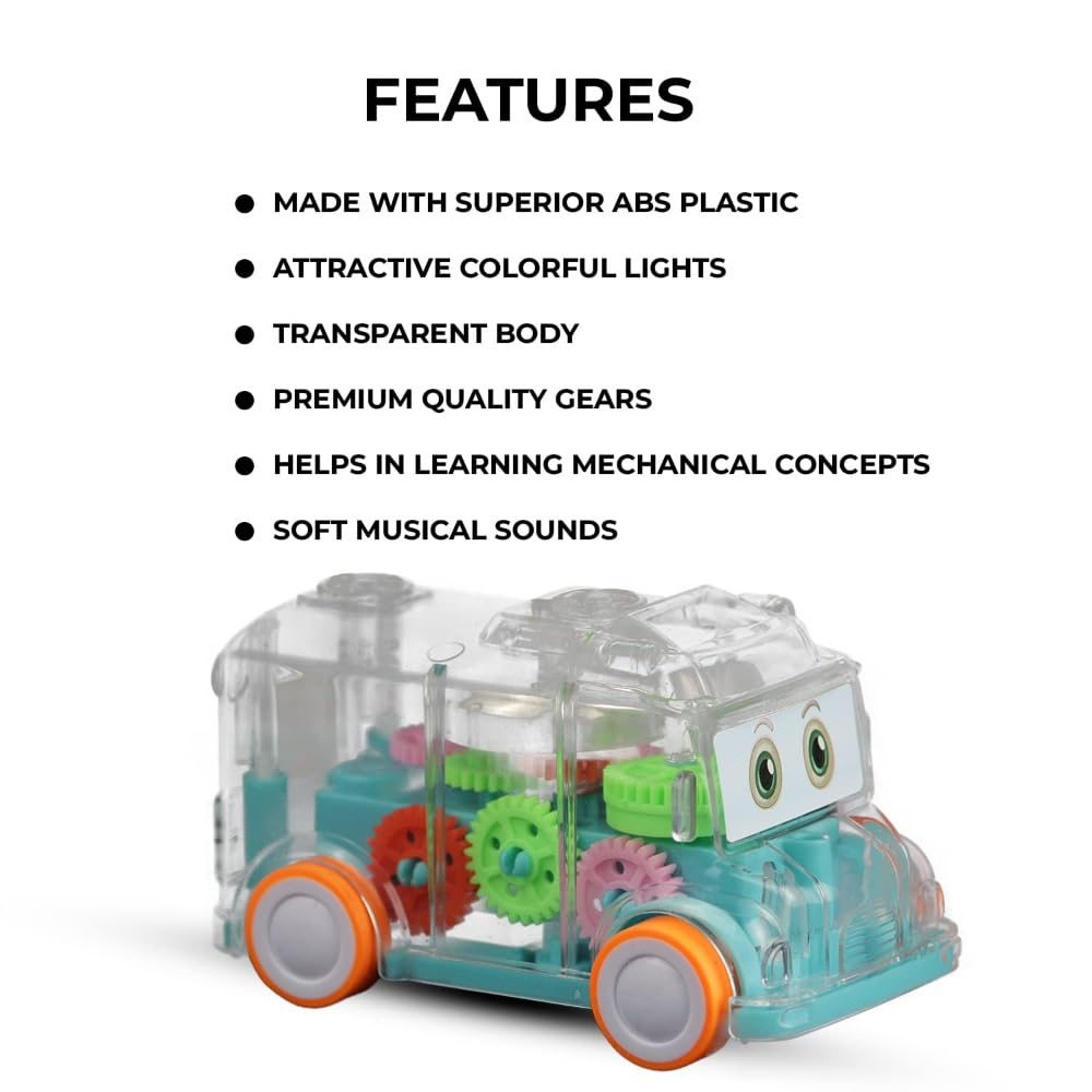- Best Recommended for 36+ months children, Best Gift Toy for Toddlers & Kids. Transparent design of this education toy bus can see the gear inside, helps the kids to know mechanical concept.