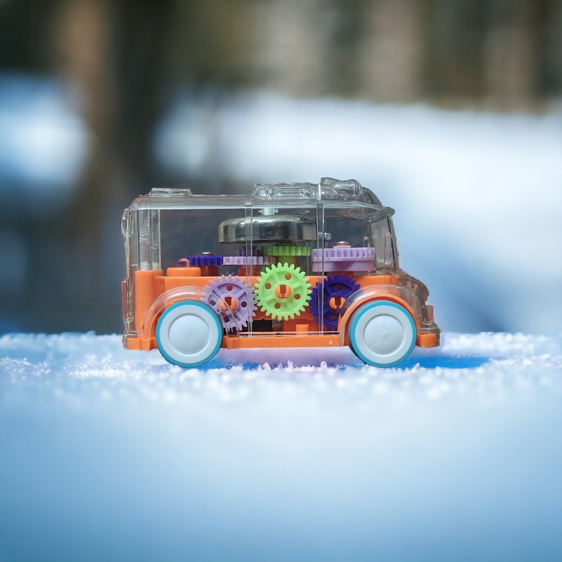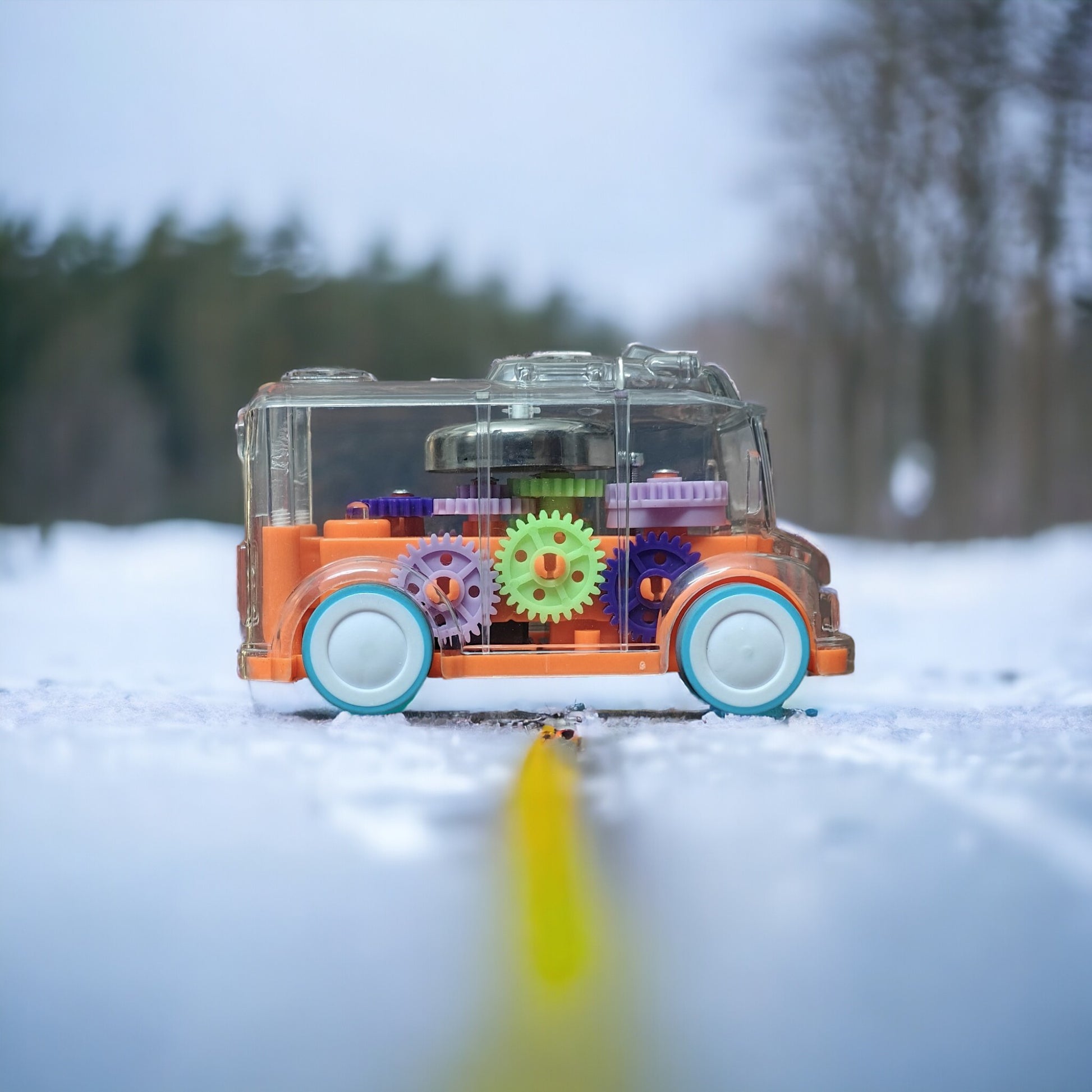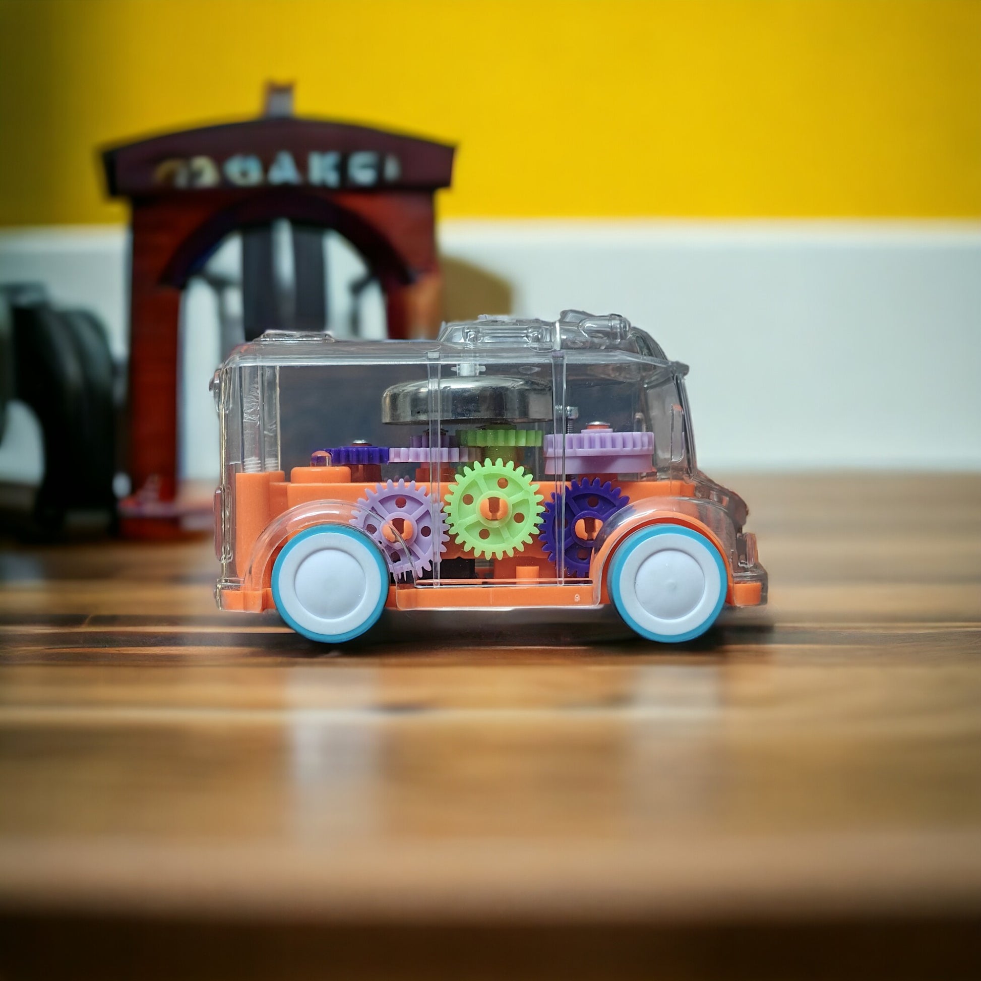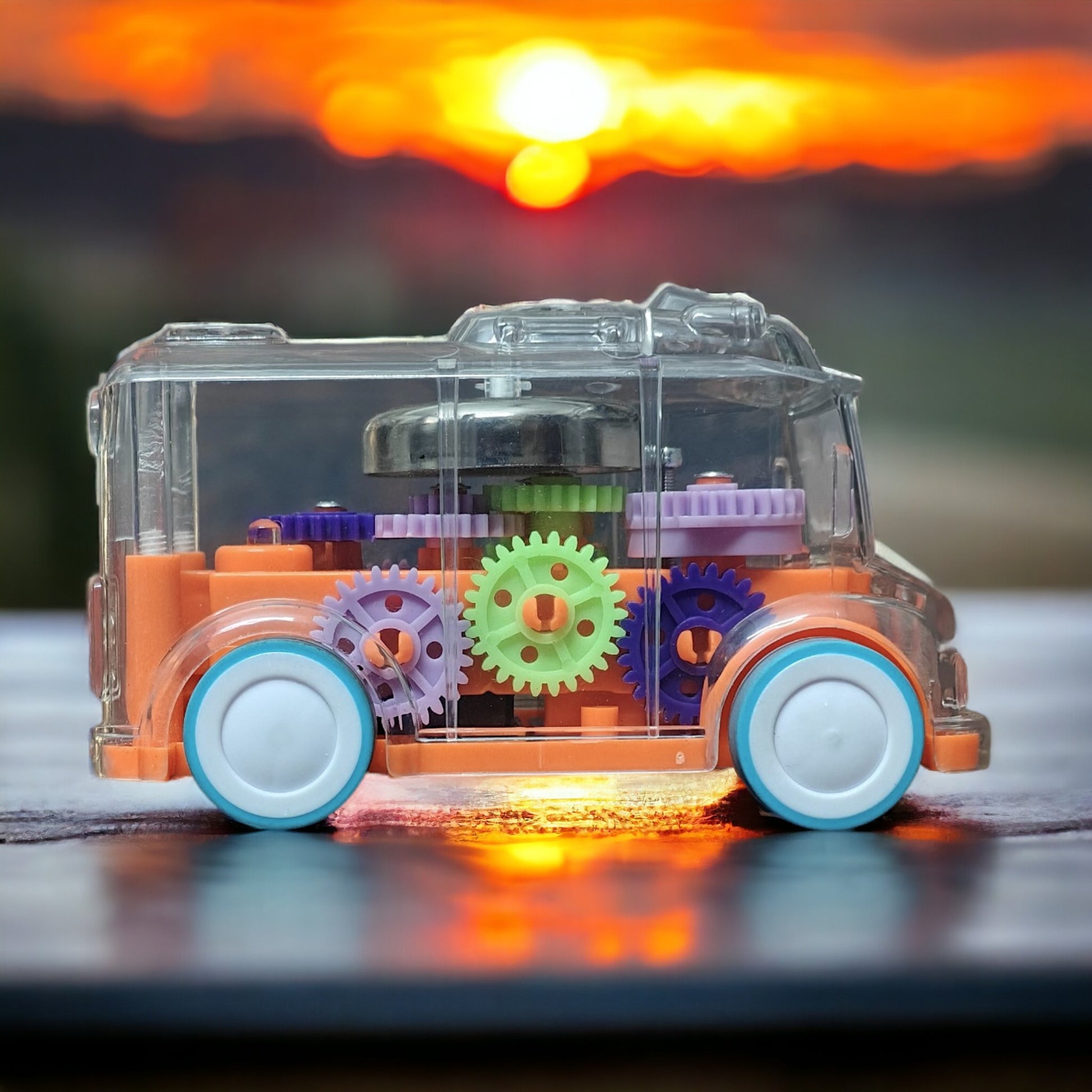 - Best Recommended for 36+ months children, Best Gift Toy for Toddlers & Kids. Transparent design of this education toy bus can see the gear inside, helps the kids to know mechanical concept.