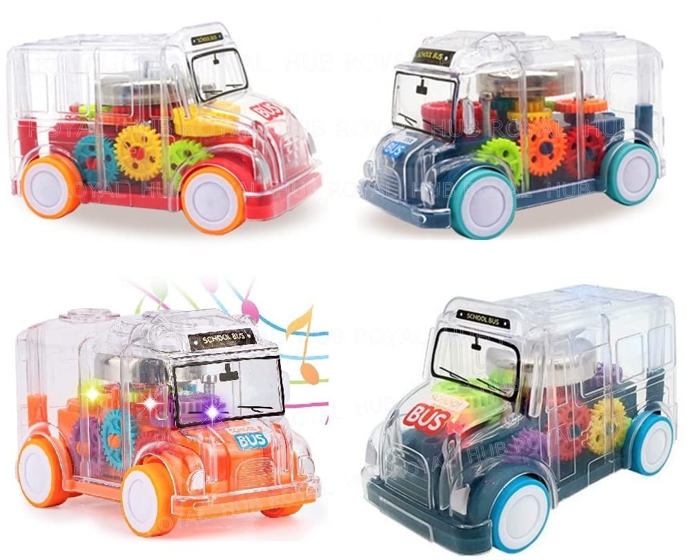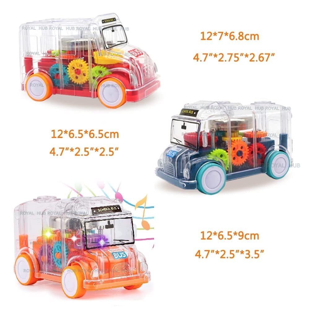 UK-0334 transparent Gear Bus for Kids Friction Powered Mini School Bus with Tinkling Sound and Light Toy for Kids
