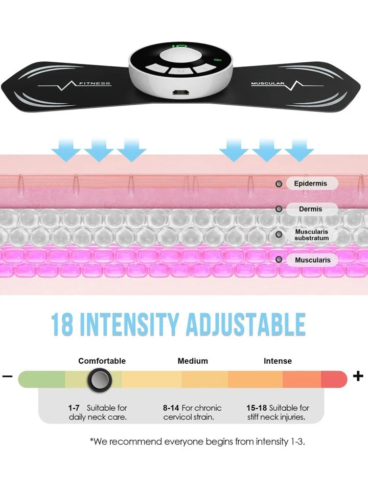 UK-0336 EMS Lymphatic Drainage Massager With 8 Modes 18 Levels, Neck Massager For Neck Back Hand Leg, 1 Host 2 Patches
