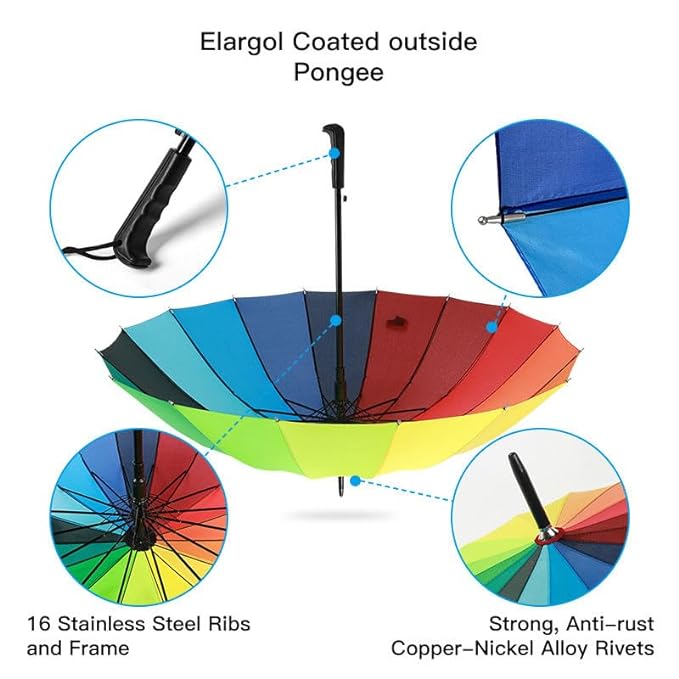 - This rainbow umbrella made of things like cloth, steel, and plastic. I can challenge with an umbrella when you see your eyes, then you will never send it back. because this umbrella is very good and looking very beautiful