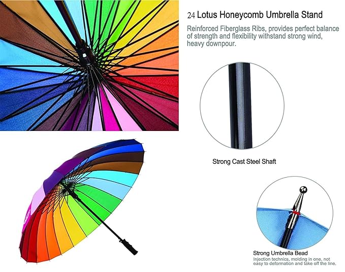 - This Rainbow umbrella made of things like cloth, steel, and plastic are very good quality. i can challenge with you after buying an umbrella when you see your eyes, then you will never send it back. because this umbrella quality is very very good. and looking very beautiful.