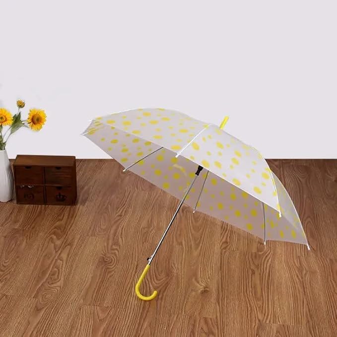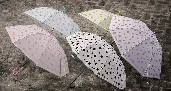 UK-0399 Transparent Doted Umbrella With Long Comfortable Grip Handle Multicolor