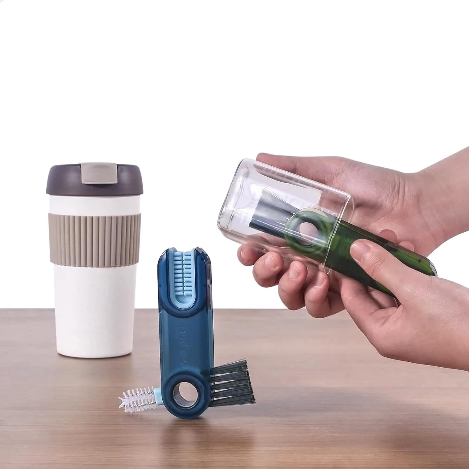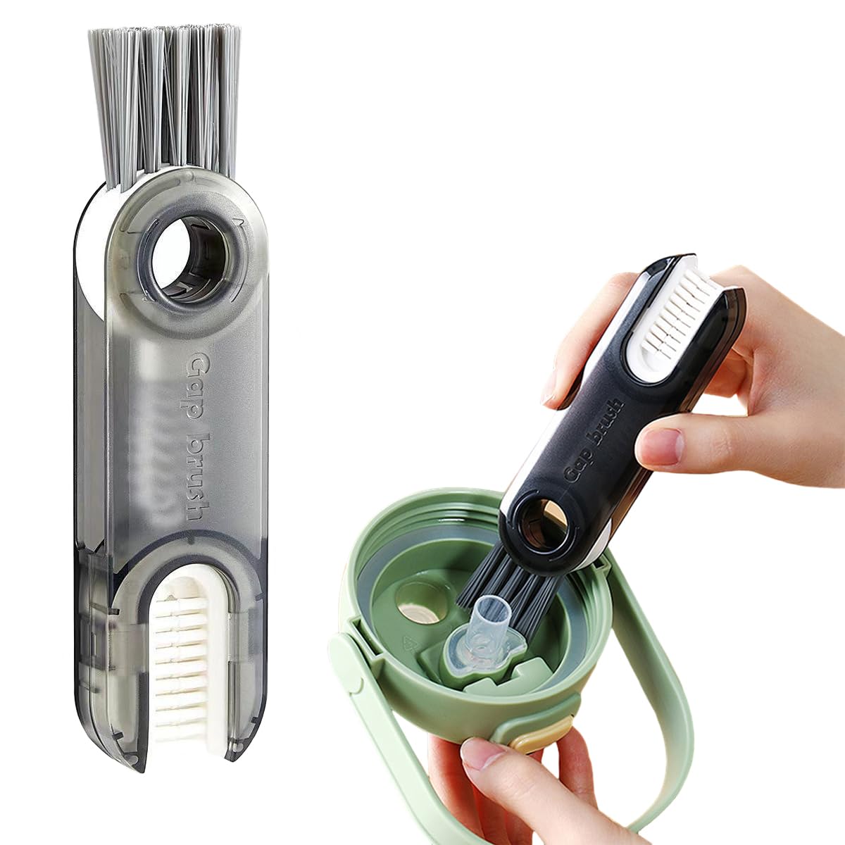 - 3 in 1 Cup Lid Cleaning Brush - U-shaped brush: clean stubborn stains around the cup mouth. Gap Brush: Clean the narrow grooves on the inner wall of the cup cover. Corner brush with hard bristles: Remove the dirt in the corner groove of the container.