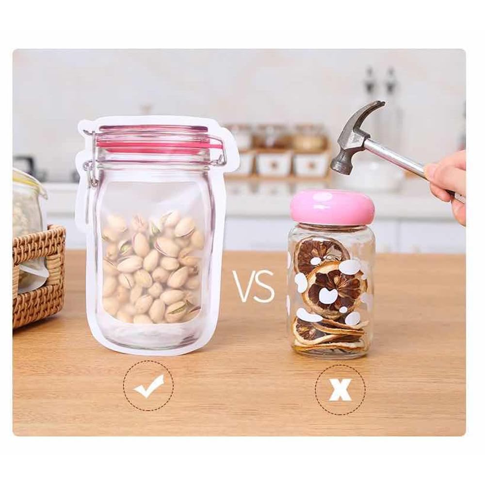Jar-shaped food storage zipper bag, is your perfect travel and camping companion. It is an ideal choice for keeping all kinds of snacks, fruits, vegetables, biscuits, sandwiches, and other foods fresh. Suitable for carrying and transporting.