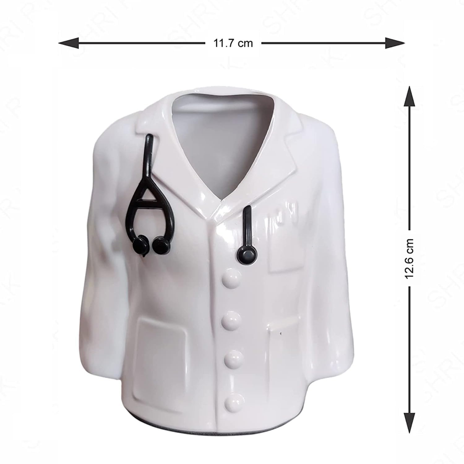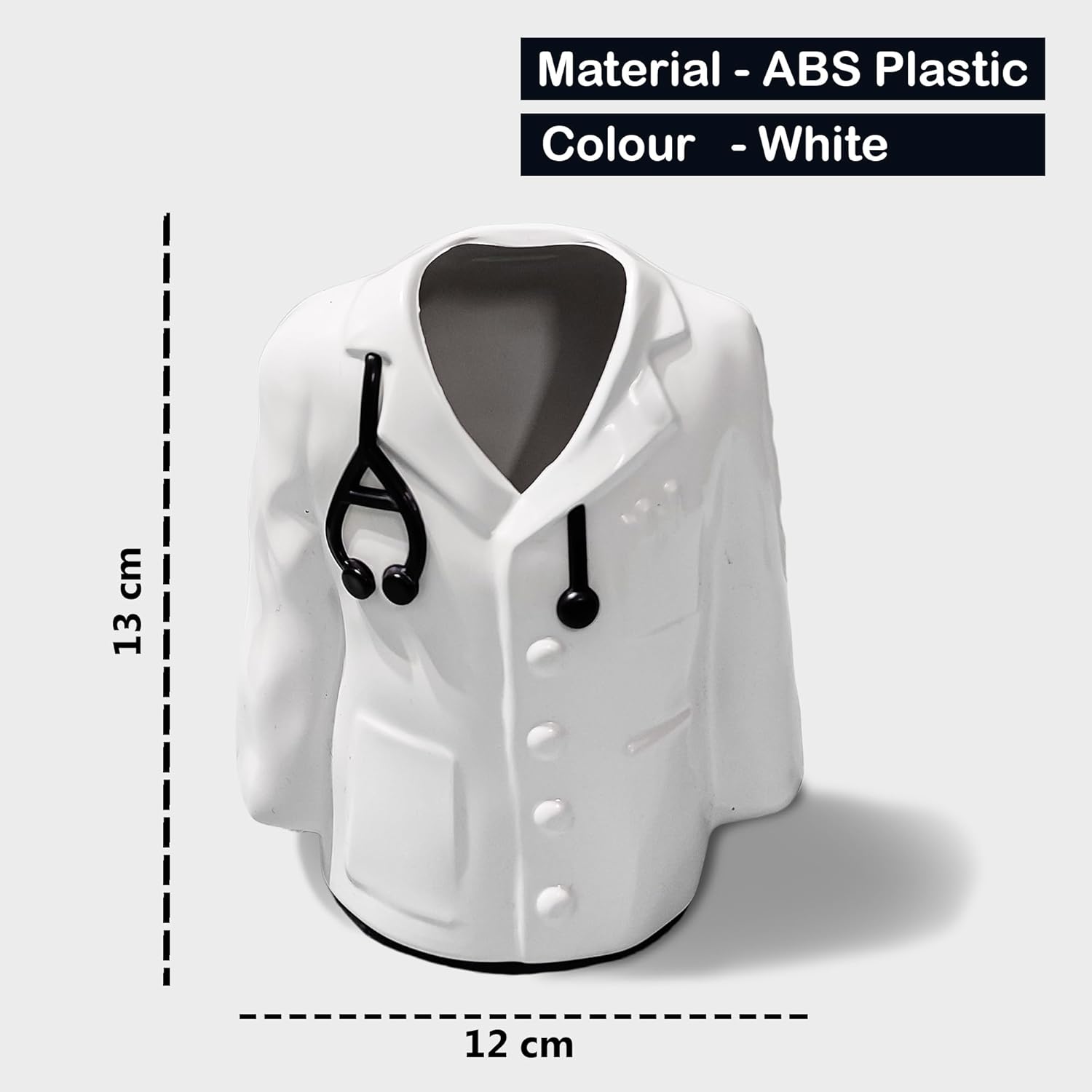 - Dimensions: Product Dimensions (LXBXH) in cms - 12.5x 7.5 x 11.5. Made of ABS creative Doctor Coat shape will be a good decor to your room or office and the package contains 1 unit of Pen Holder.