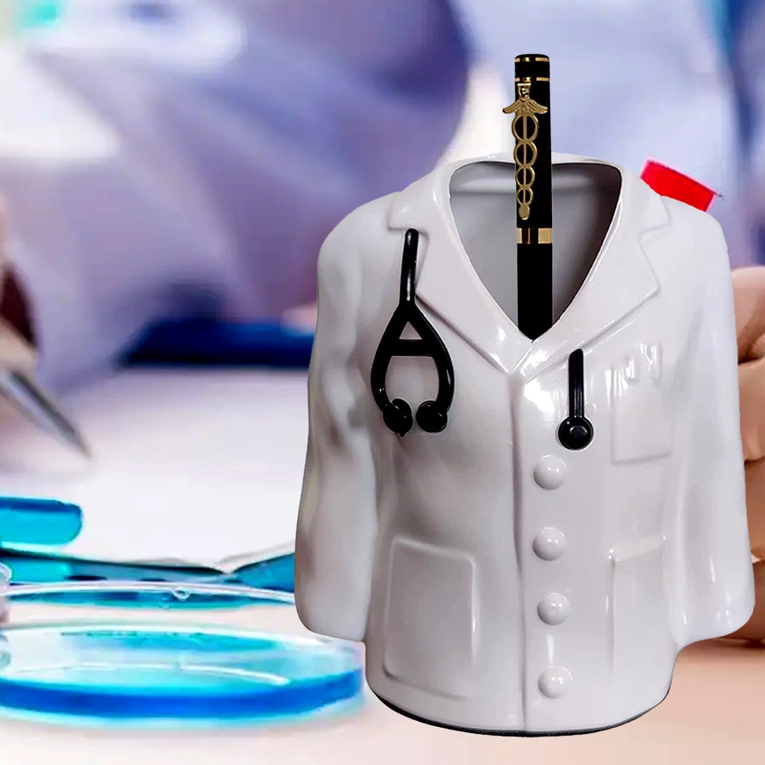 UK-0423 Doctor Coat Pen Pencil Holder Plastic Stand for Desk and Offices Tables