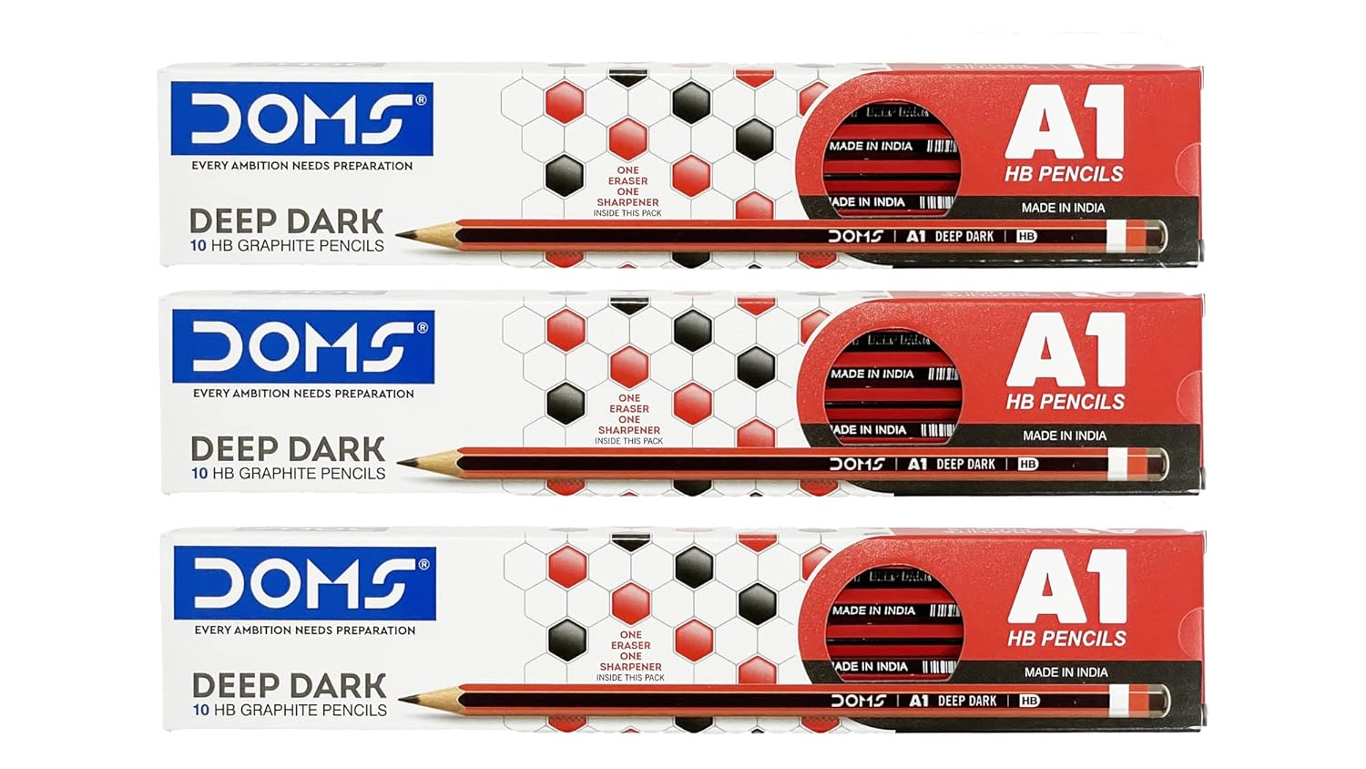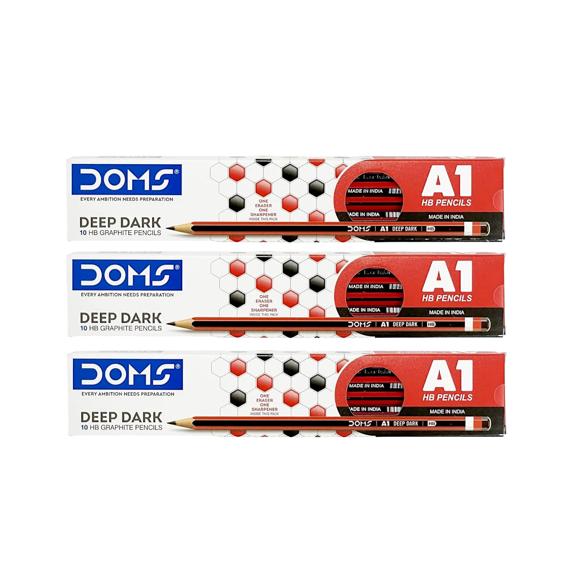 - Package Includes - Doms A1 Deep Dark HB Graphite Pencil | Includes Sharpner and Eraser | Pack of 20