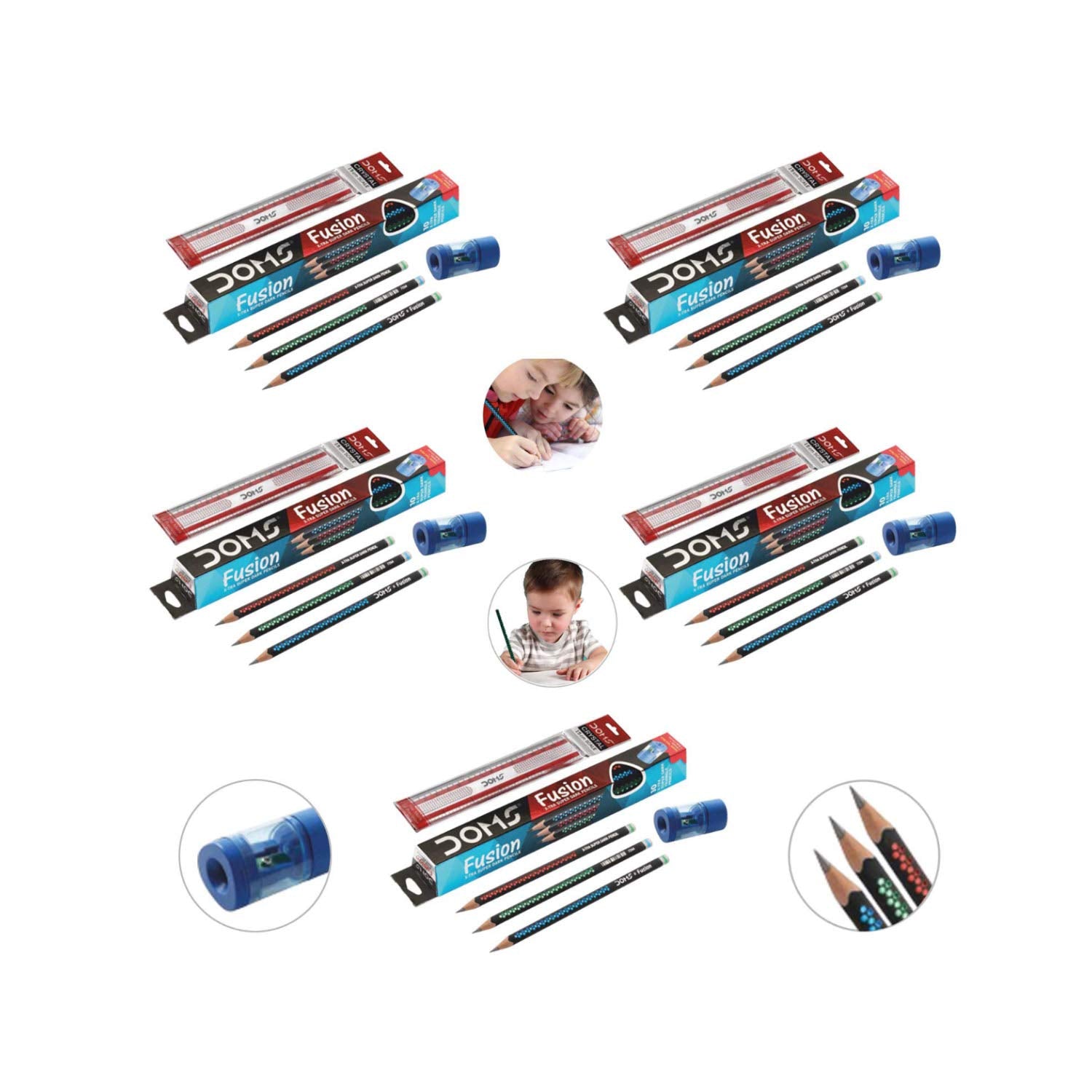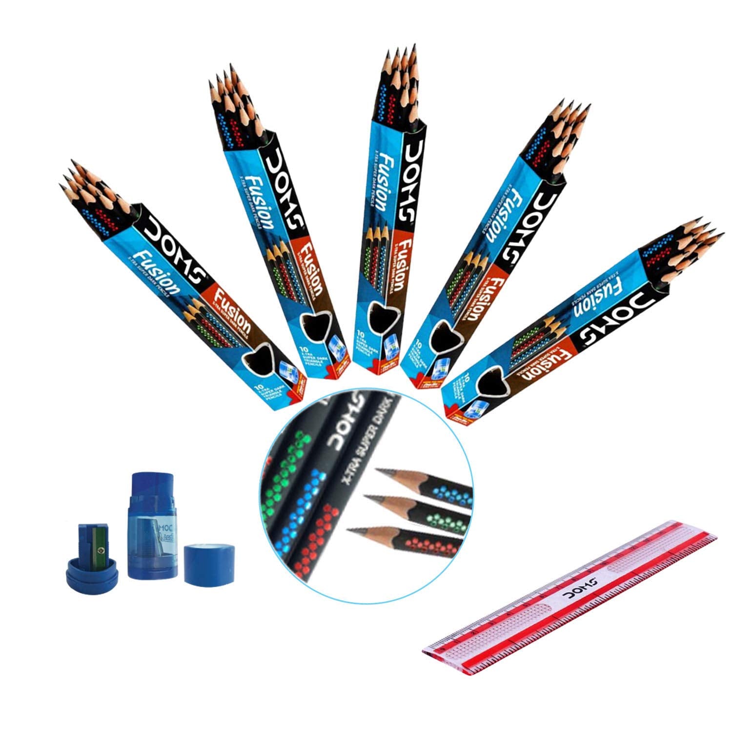 UK-0510 DOMS Fusion X-tra Super Dark Pencil School Stationary Rubber Tipped Graphite for Kids, Boys & Girls