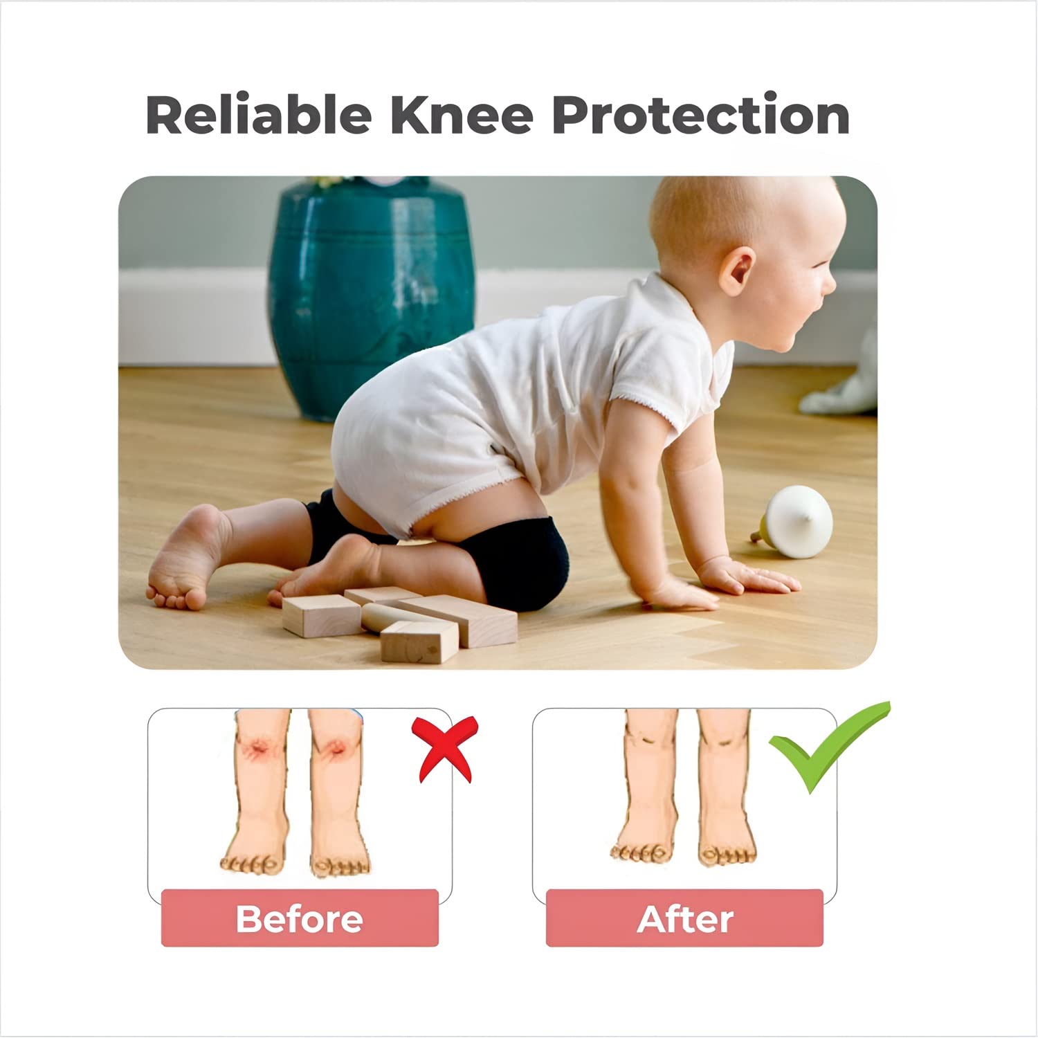 - soft and protective pair of baby Knee pads. Ideal for crawling, these knee pads feature anti-slip padded stretchable elastic and made of cotton soft breathable fabric