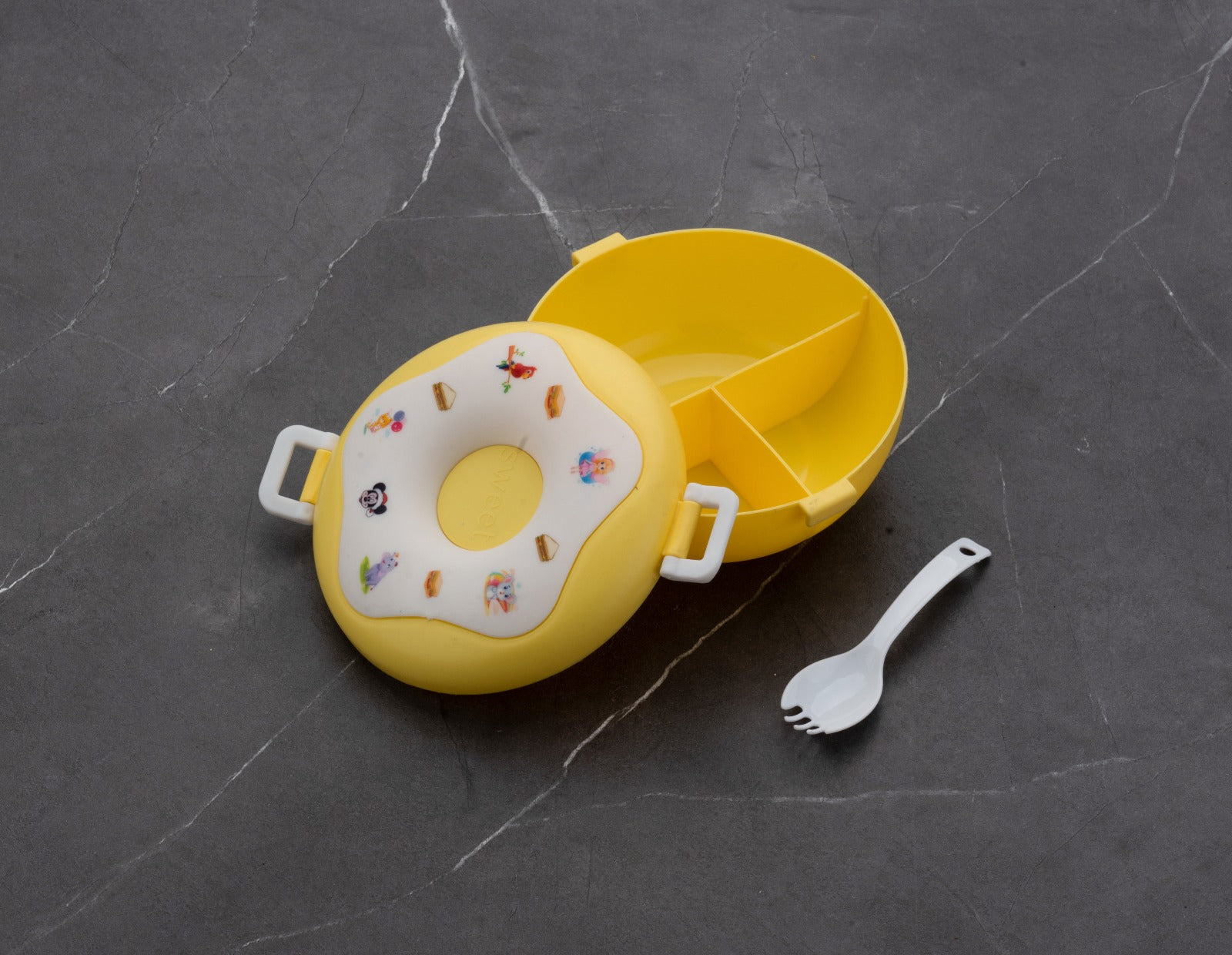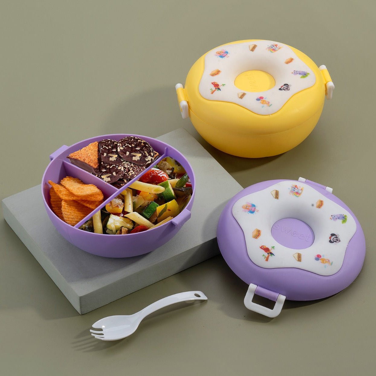 - Shape & Design: This luxurious Donut shaped Lunch box is extremely attractive with actual 3d sprinkle elements on the top with the shape and design of a donut thus making it very attractive for any child to take it to school or to any garden for play breaks.