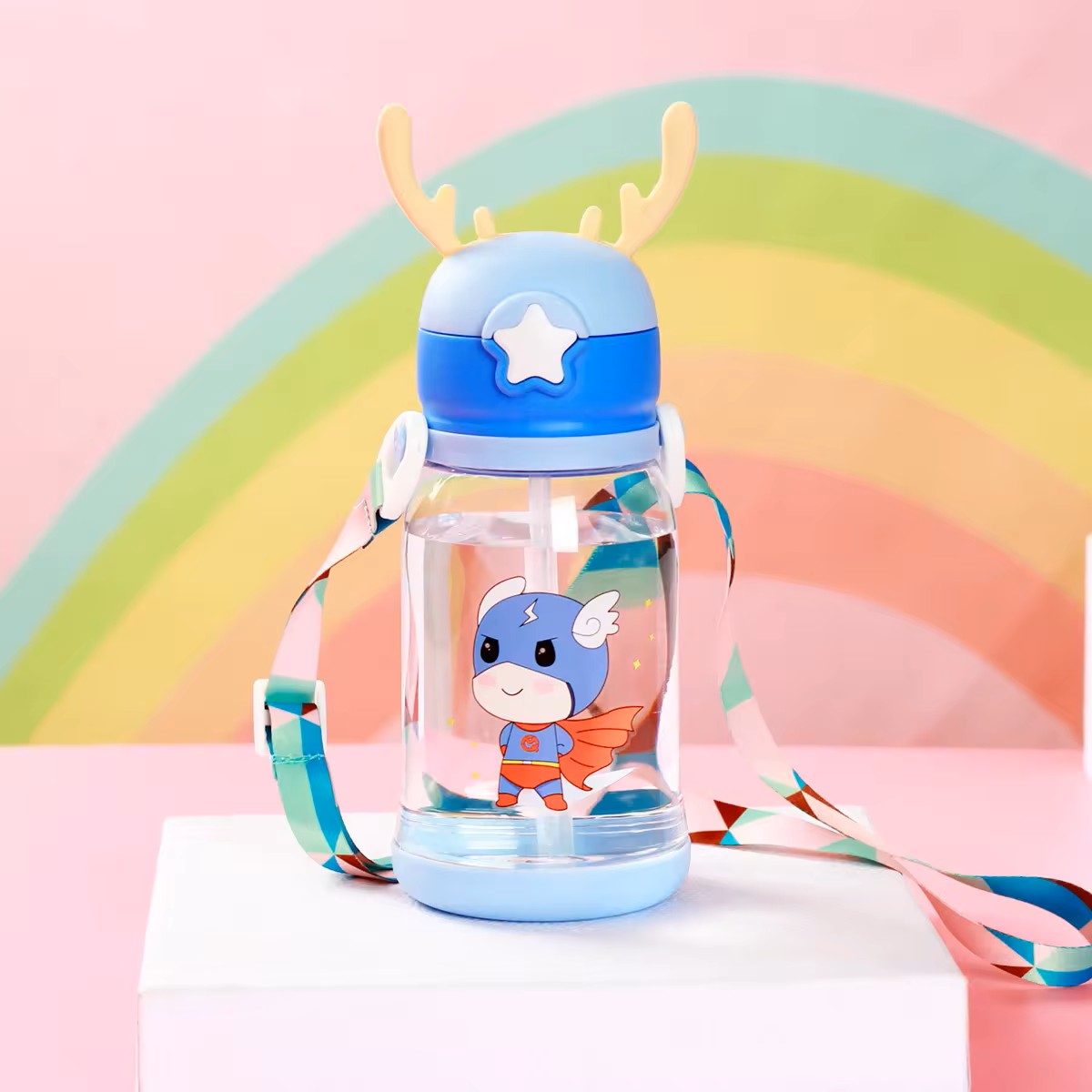 UK-0603 Cute cartoon children antlers kawaii kids water bottle school large capacity girls/boys portable water bottles child