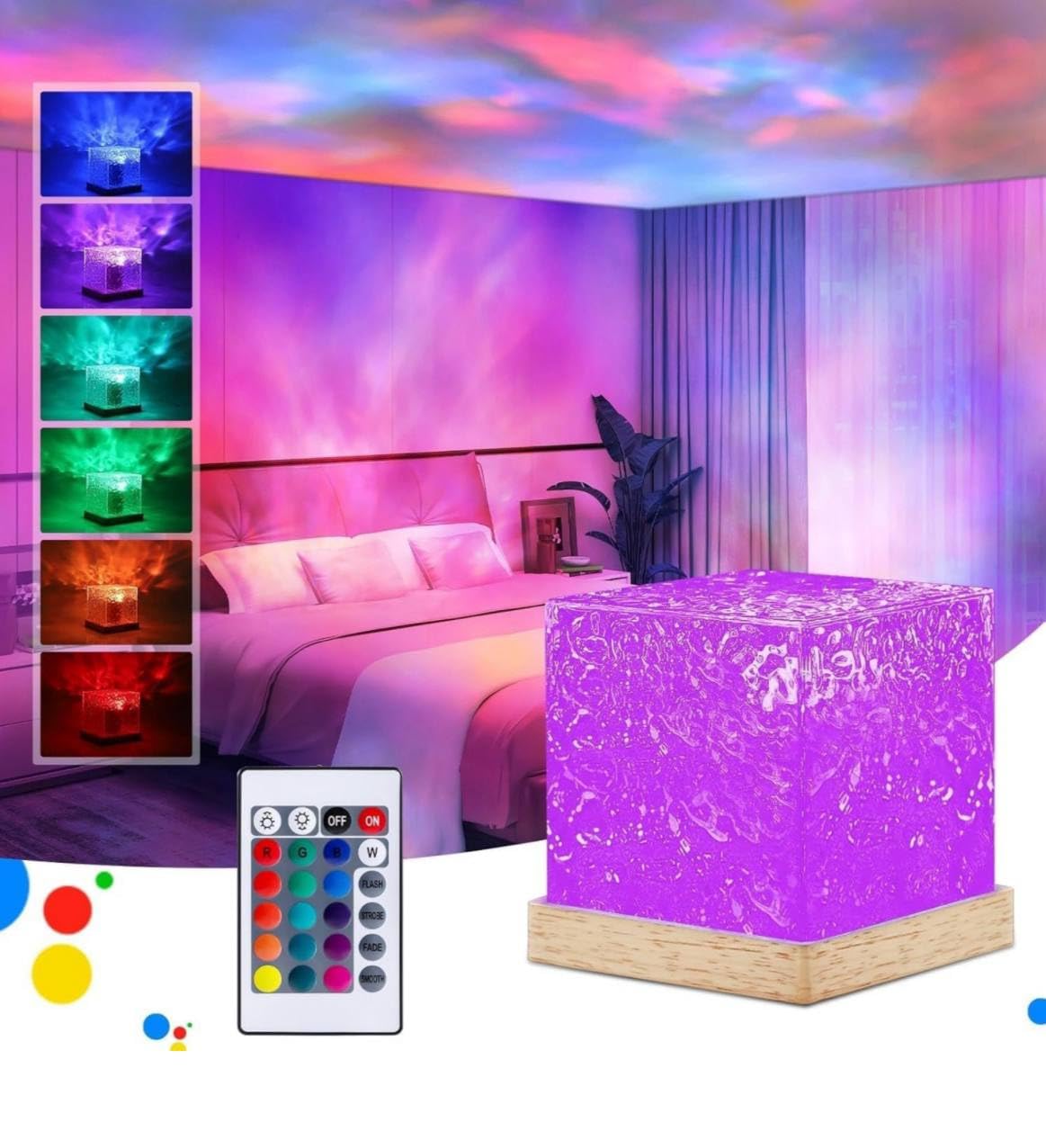 - Multi-Color Crystal Lamp: The upgraded version provides 16 colors, and the design of rotating water ripples makes every change of light and shadow full of surprises, adding infinite reverie and sweetness to your love nest