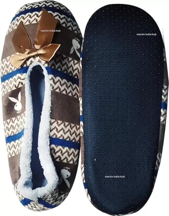 UK-0678 Women & Girl Winter Soft Fluffy Slippers Socks with Non-Slip Sole. (Pack of 1 Pair) (Assorted Color & Design Pattern)
