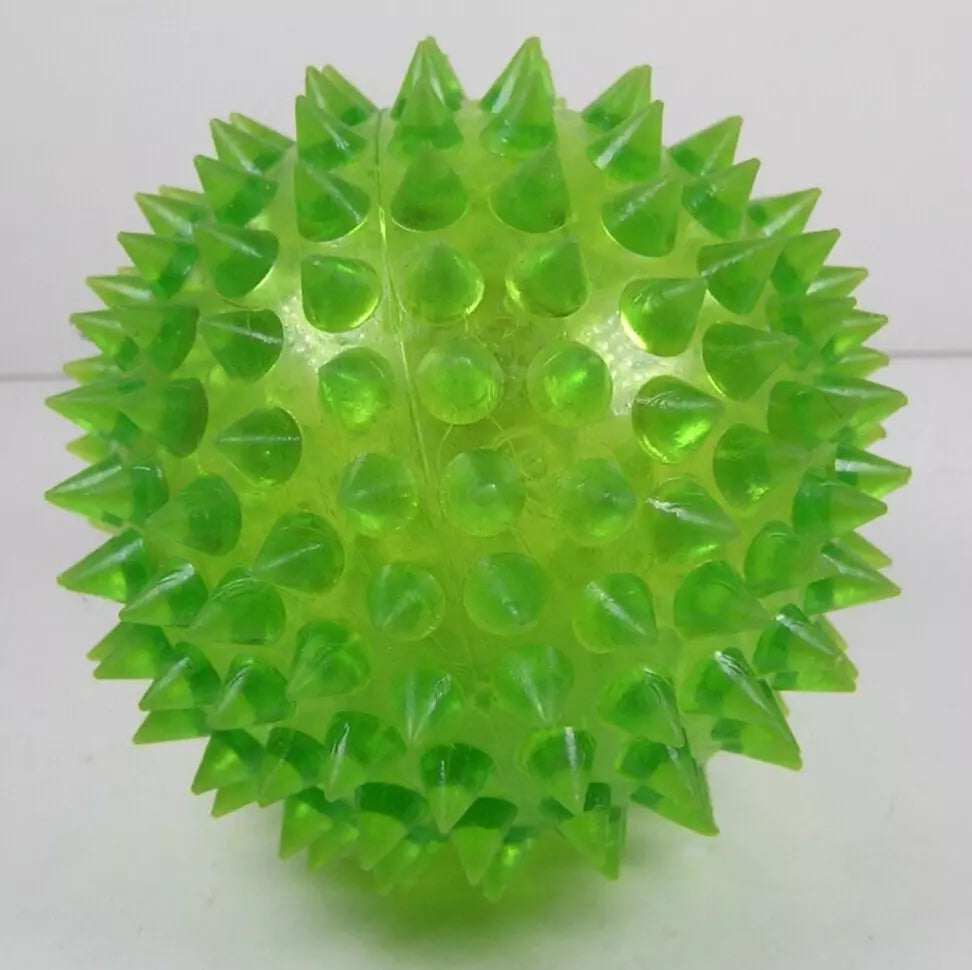 UK-0729 Unbranded Green Light Up Spiked Bounce Ball 3" Diameter Children's Toy Used