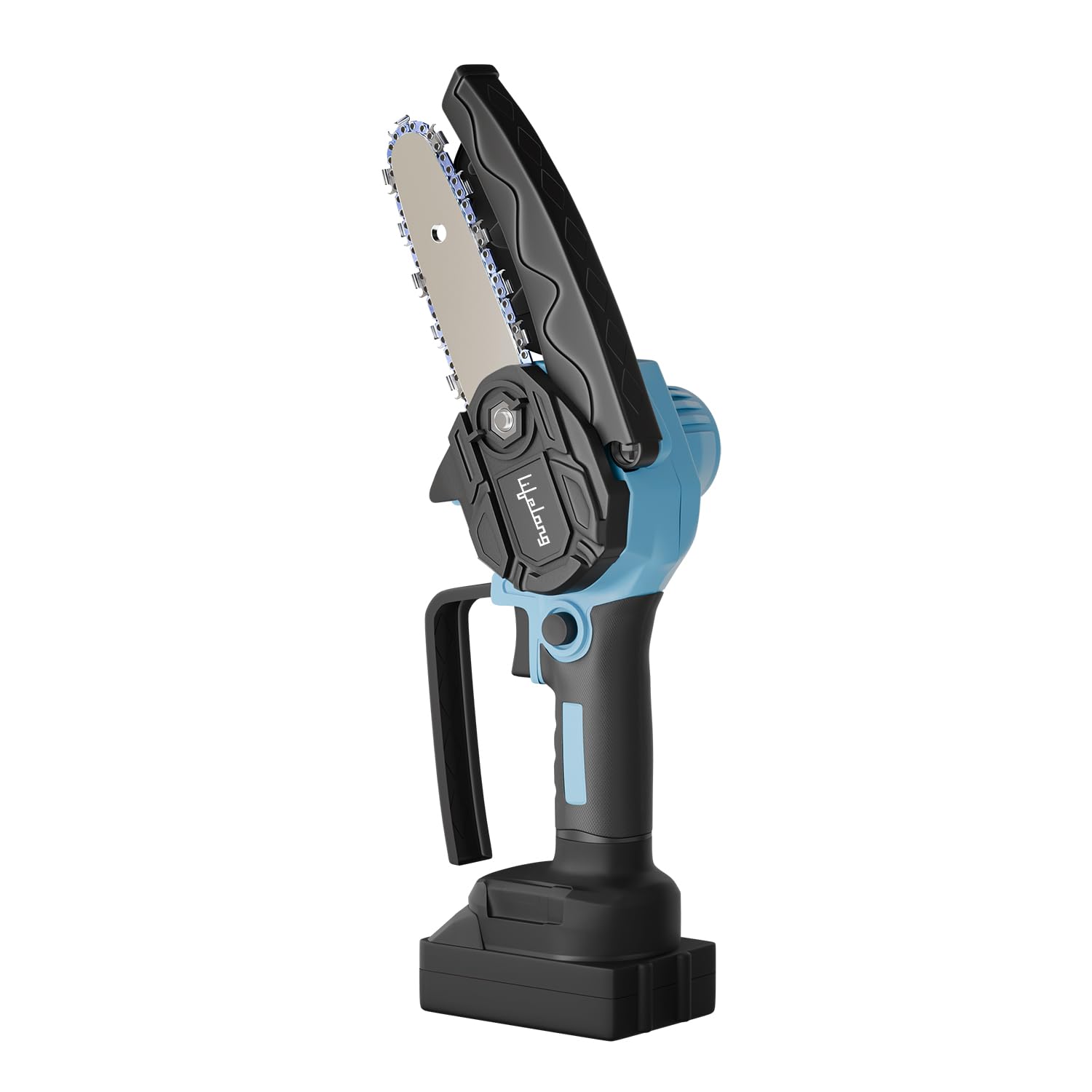 - 【Upgraded Handheld Mini Chainsaw】This cordless chainsaw has added a safety lock switch and splash guard. To prevent accidental starting, the safety lock and trigger must be pressed simultaneously to start the saw. The splash baffle allows you to work more safely. LED light has also been added, allowing you to work worry-free in the dark.