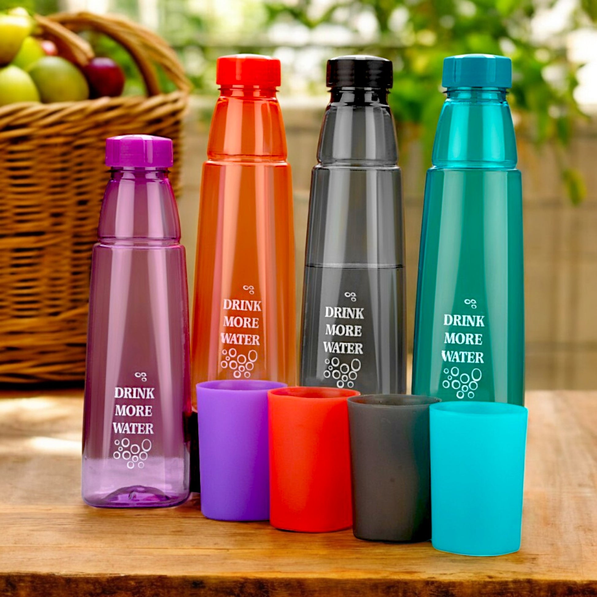 UK-0814 Water Bottle 1000 ml With Drinking Glass (1Psc, Multicolor, Plastic)