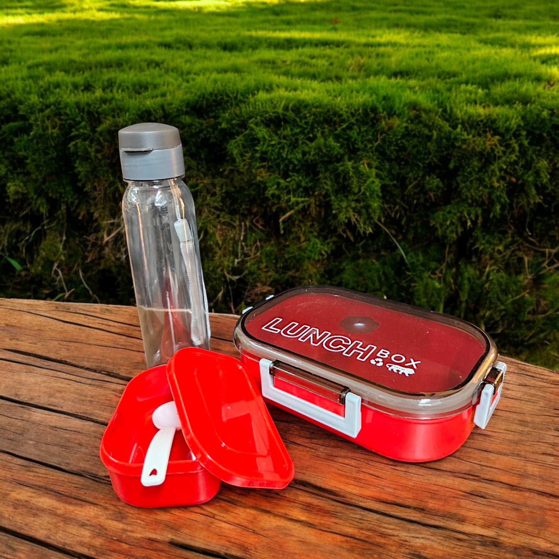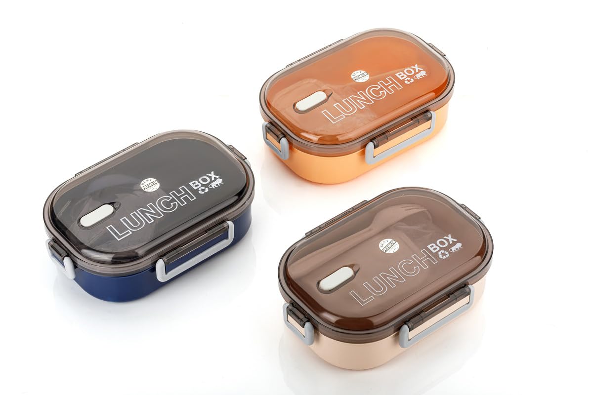UK-0832 Students Lunch Box Leak Proof and 1 Pic Spoon With Water Bottle , Colour for School & Office Make in India Product (Multicolor)