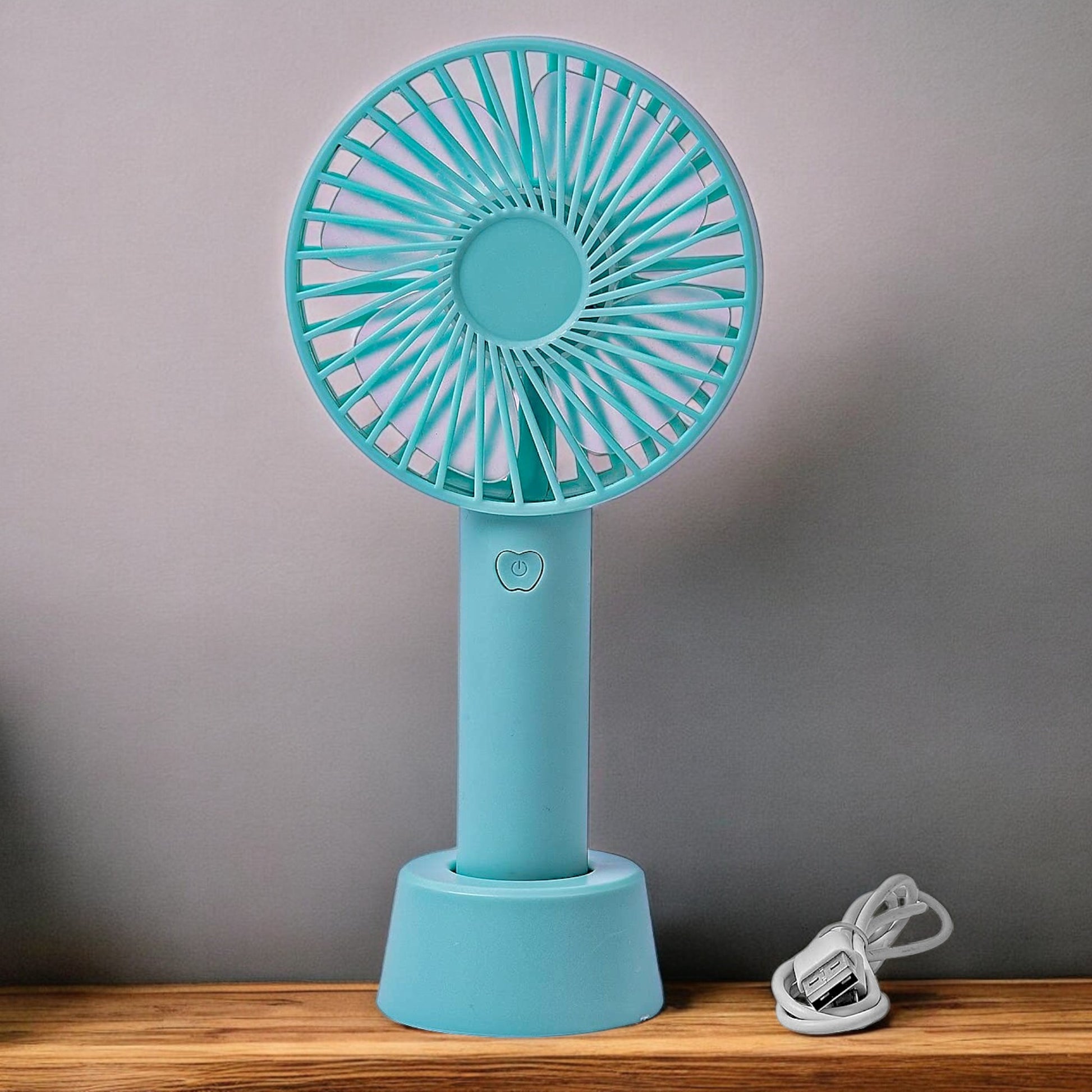 UK-0837 Portable USB Hand Fan Built-in Rechargeable Battery Operated Table Fan with Standing Holder Handy Base For Home Office Indoor Outdoor Travel