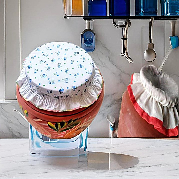 UK-0845 Matka Cover with Rubber Grip Size Adjustable Made with 100% Cotton Washable and Reusable Cloth