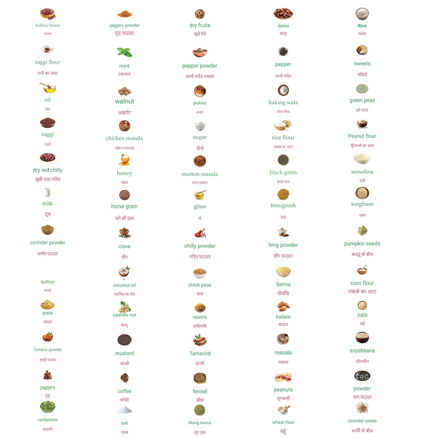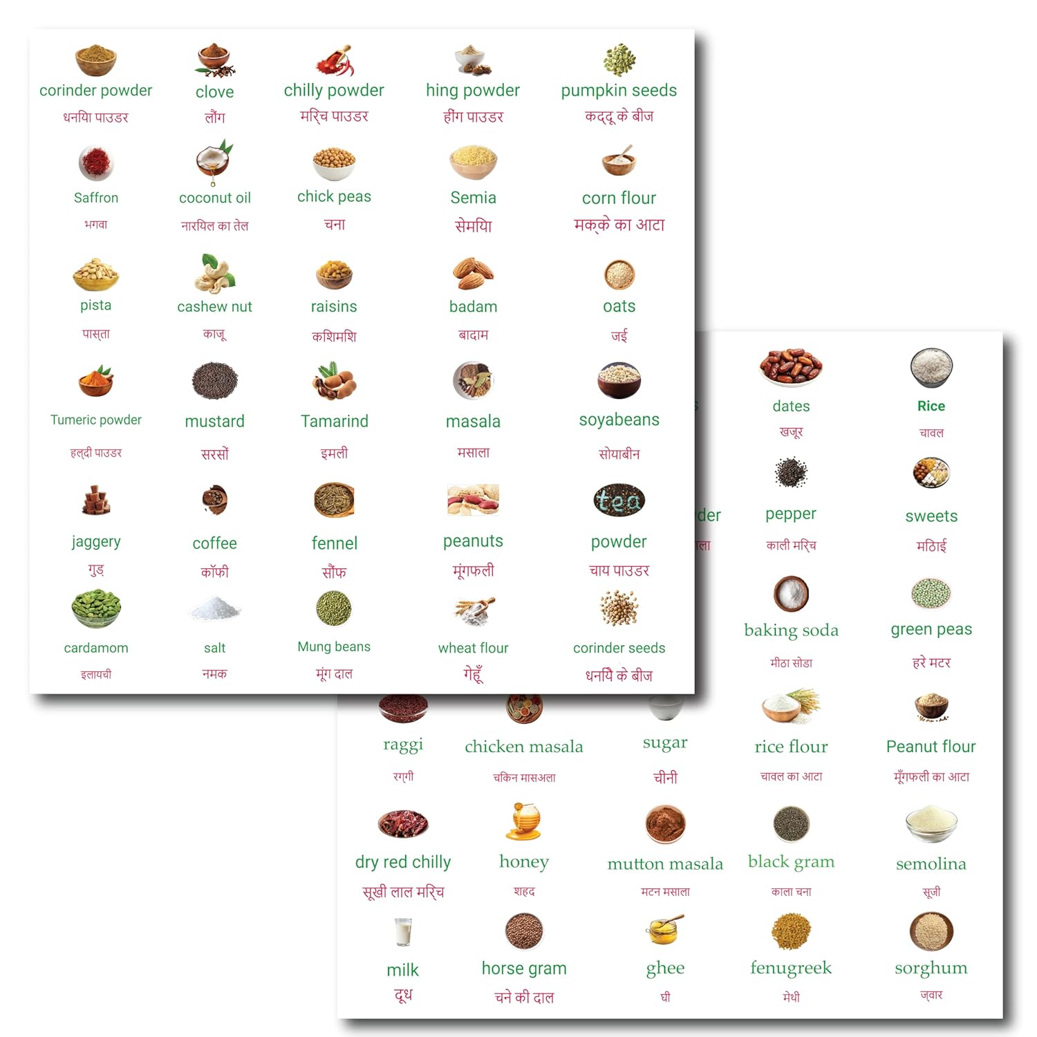 UK-0854 Kitchen Container Sticker | Kitchen Label Sticker Hindi English with Picture for Jar Glass Bottle Home Organiser