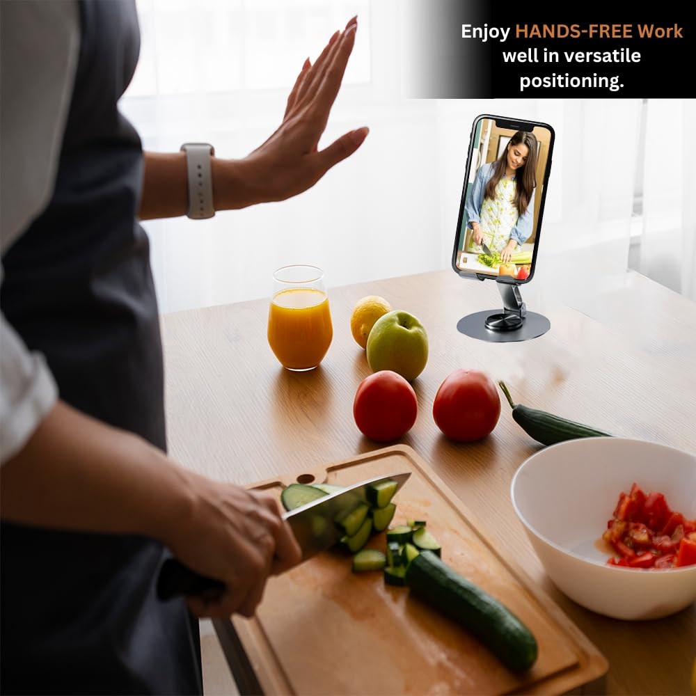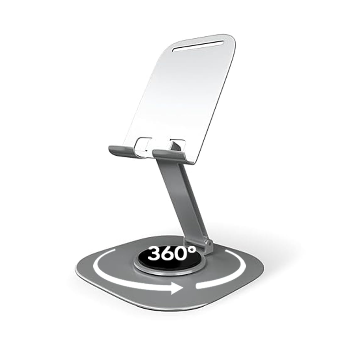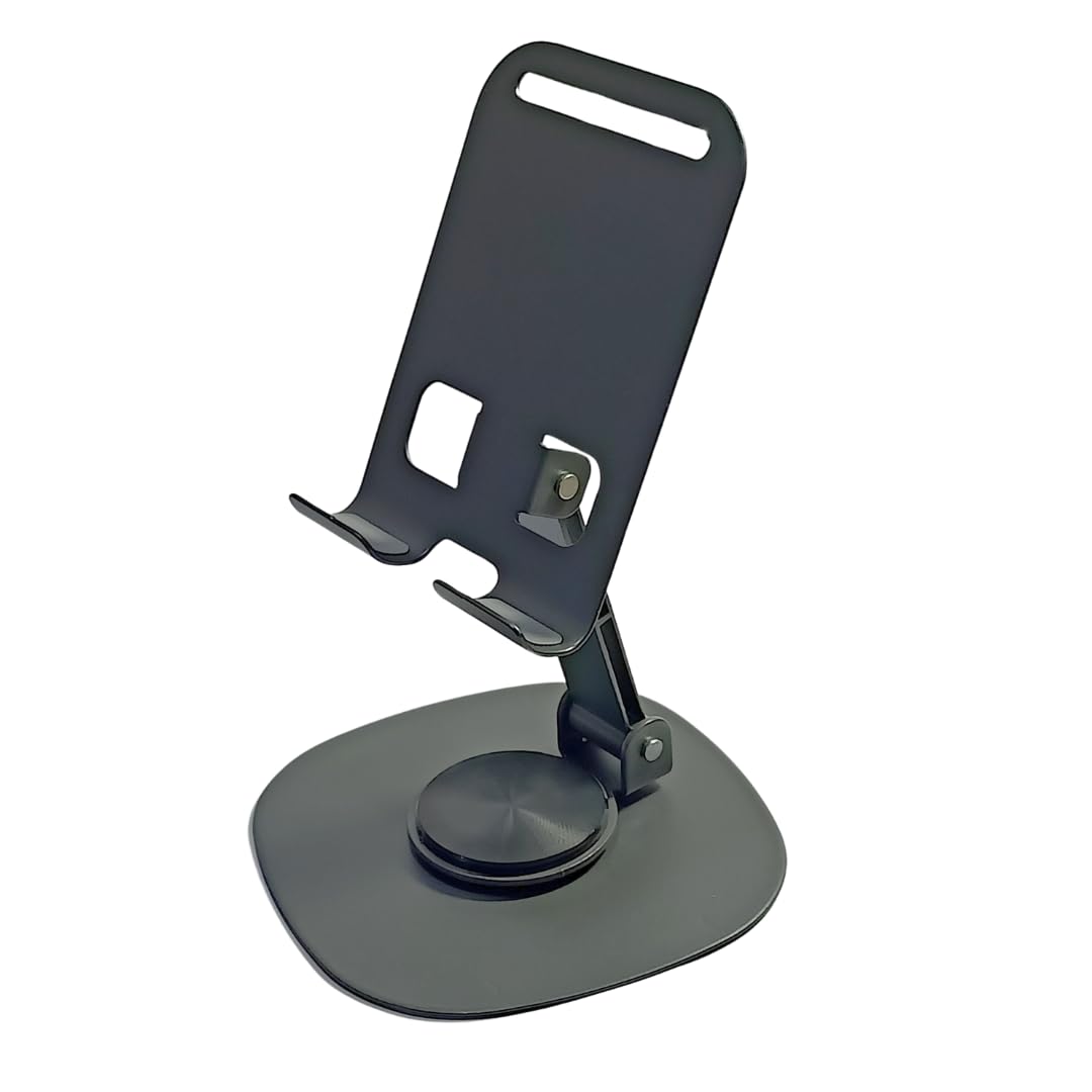 - 360° Rotatable Design for Optimal Viewing – The Elfora Metal Mobile Stand features a full 360° rotation, allowing you to effortlessly adjust your phone to the perfect angle for video calls, gaming or streaming.