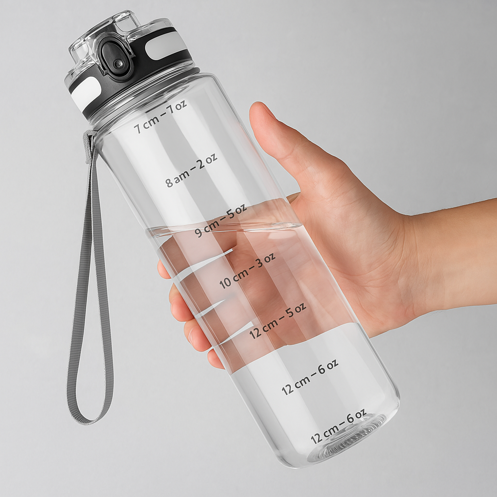 - CAPACITY AND MATERIAL: 1-litre transparent water bottle made from durable, BPA-free material that's both leak-proof and break-resistant for daily use